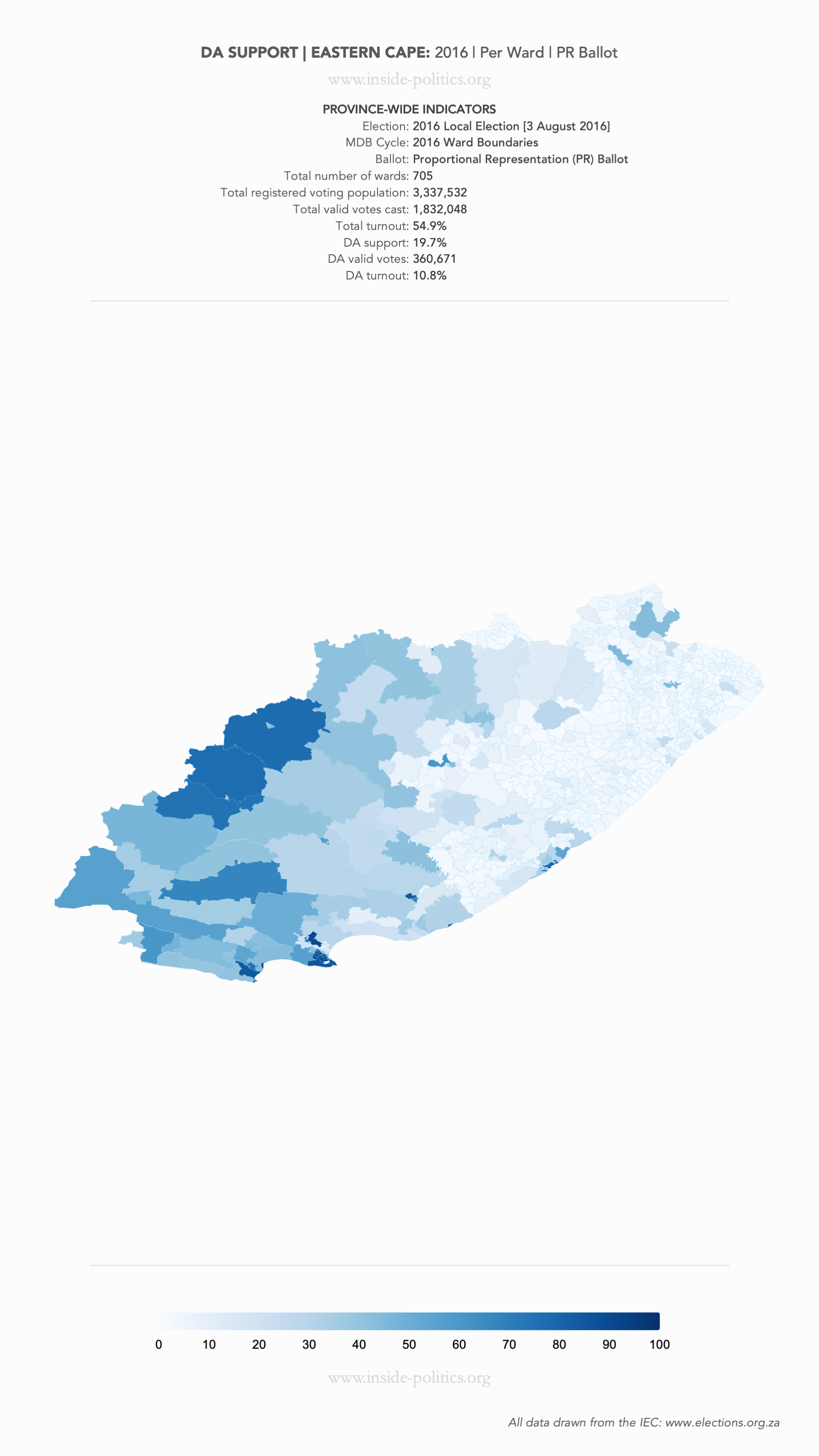 Heat Map: Eastern Cape | 2016 | DA Support by Ward