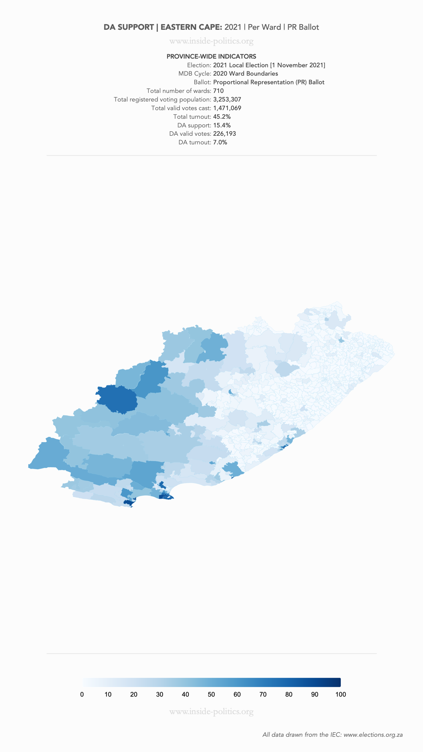 Heat Map: Eastern Cape | 2021 | DA Support by Ward