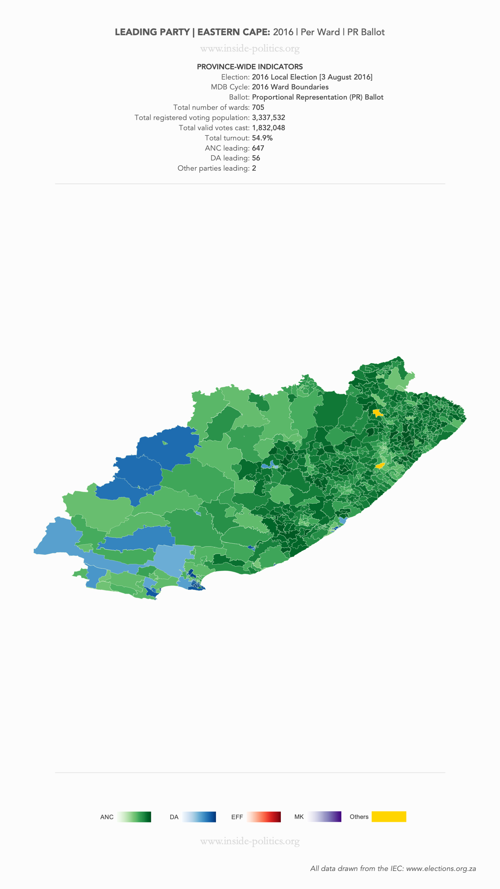 Heat Map: Eastern Cape | 2016 | Leading Party Support by Ward