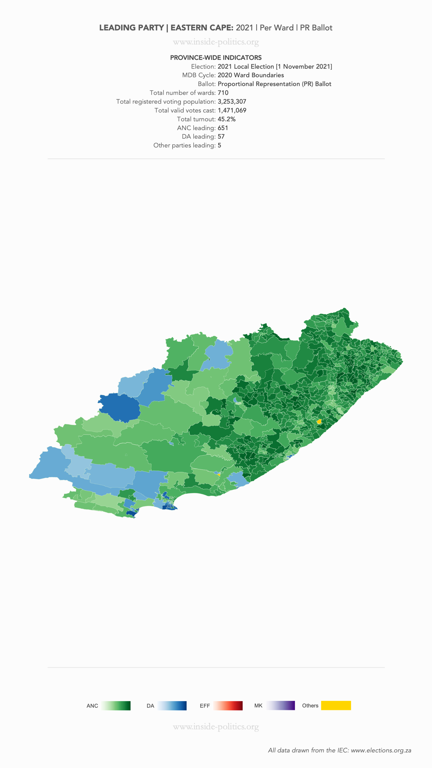 Heat Map: Eastern Cape | 2021 | Leading Party Support by Ward