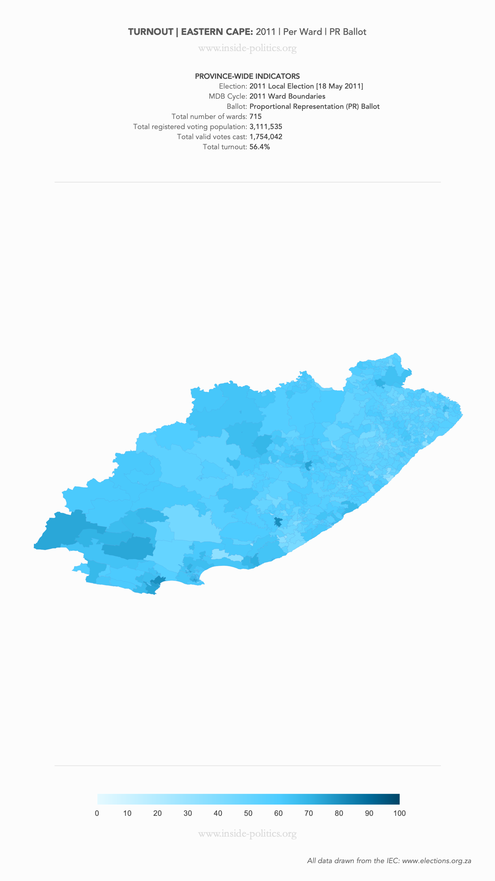 Heat Map: Eastern Cape | 2011 | Turnout by Ward