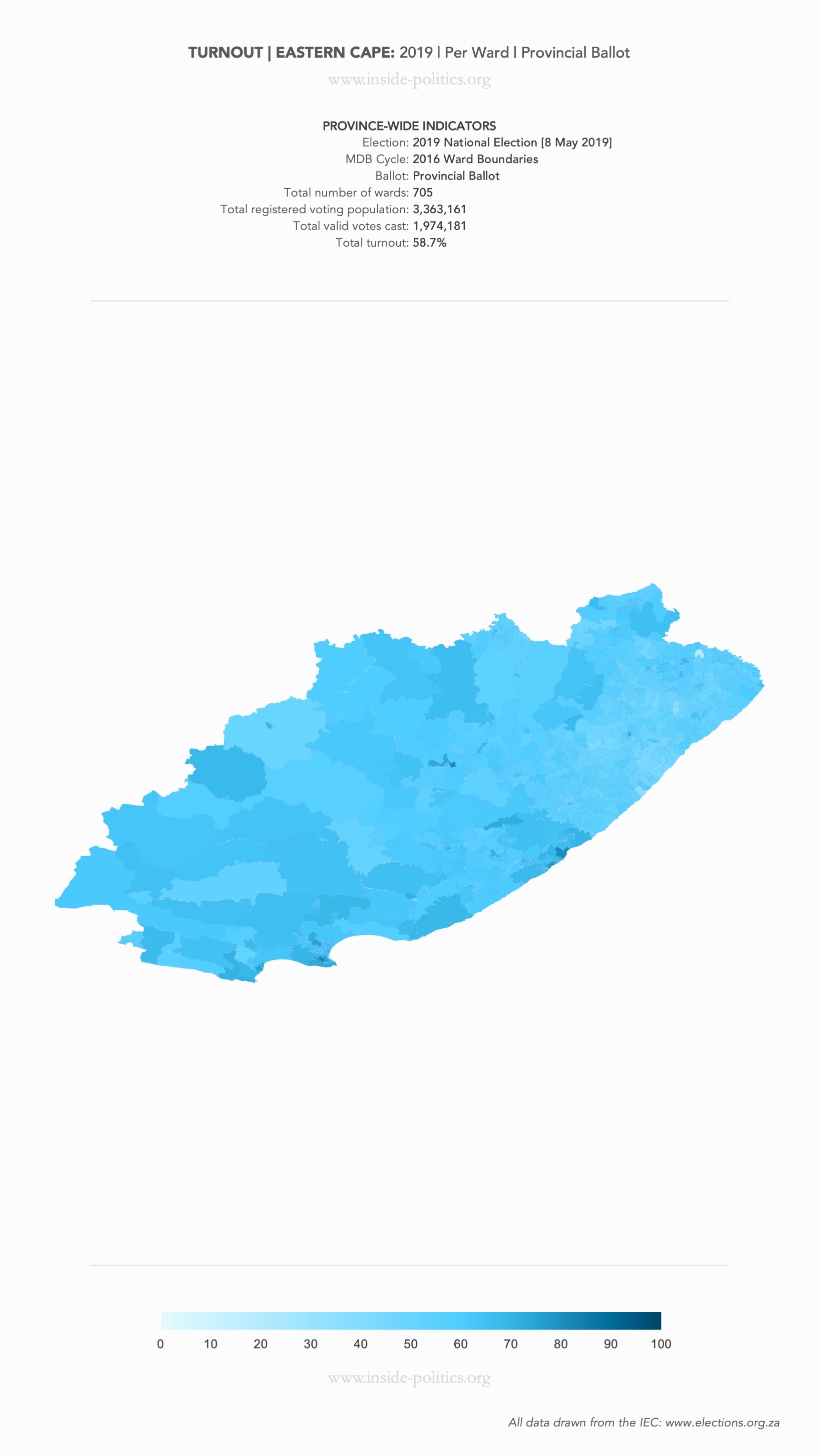 Heat Map: Eastern Cape | 2019 | Turnout by Ward