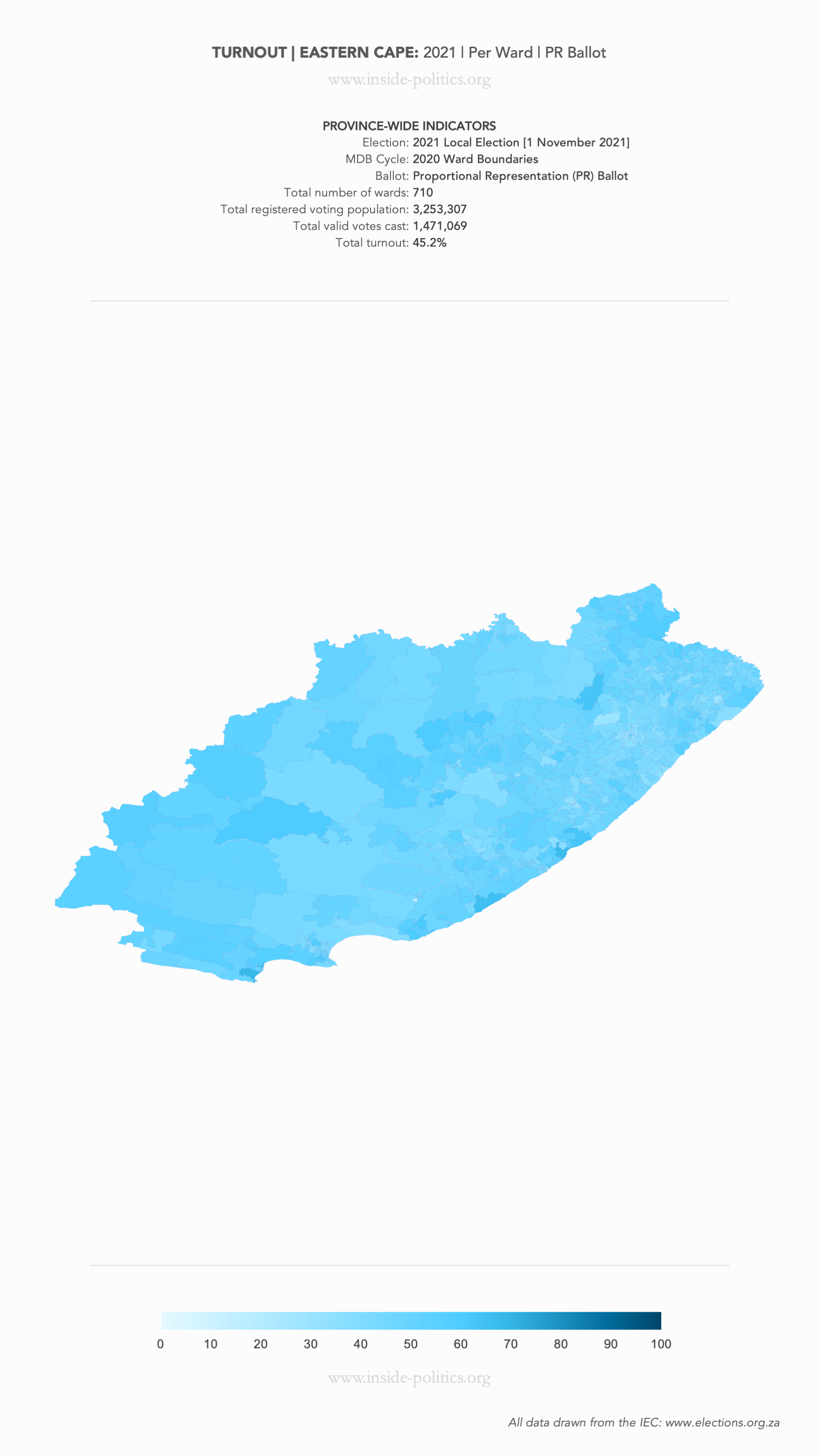 Heat Map: Eastern Cape | 2021 | Turnout by Ward