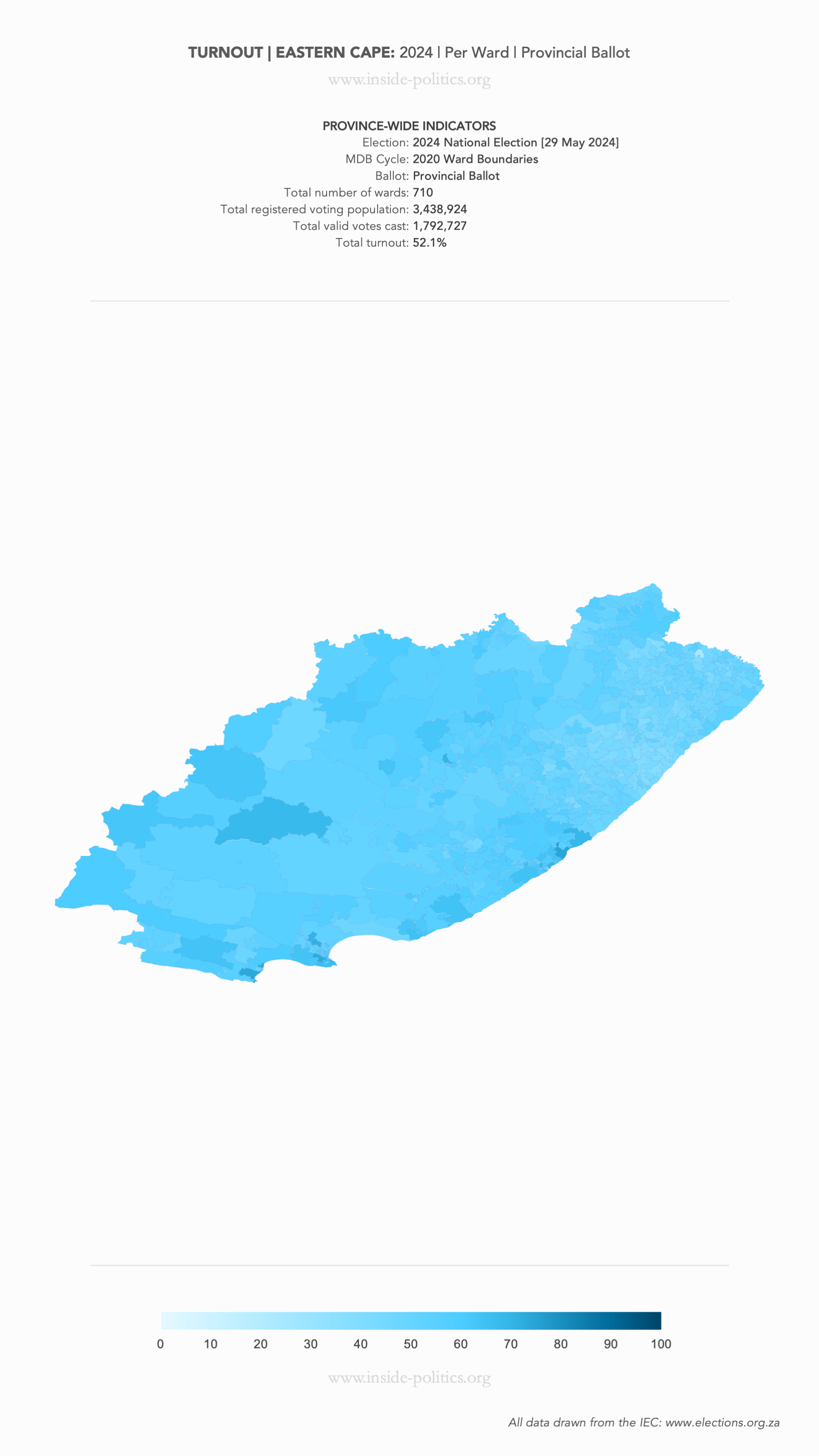 Heat Map: Eastern Cape | 2024 | Turnout by Ward