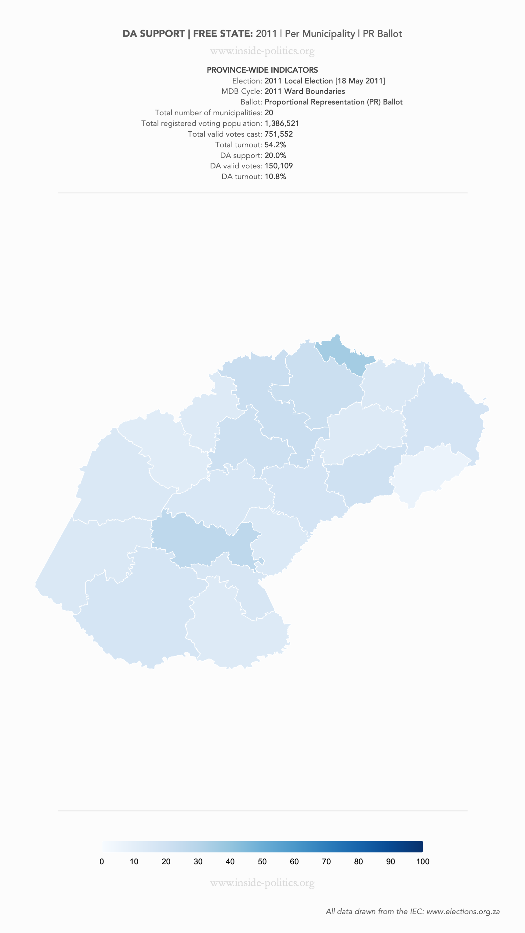 Heat Map: Free State | 2011 | DA Support by Municipality