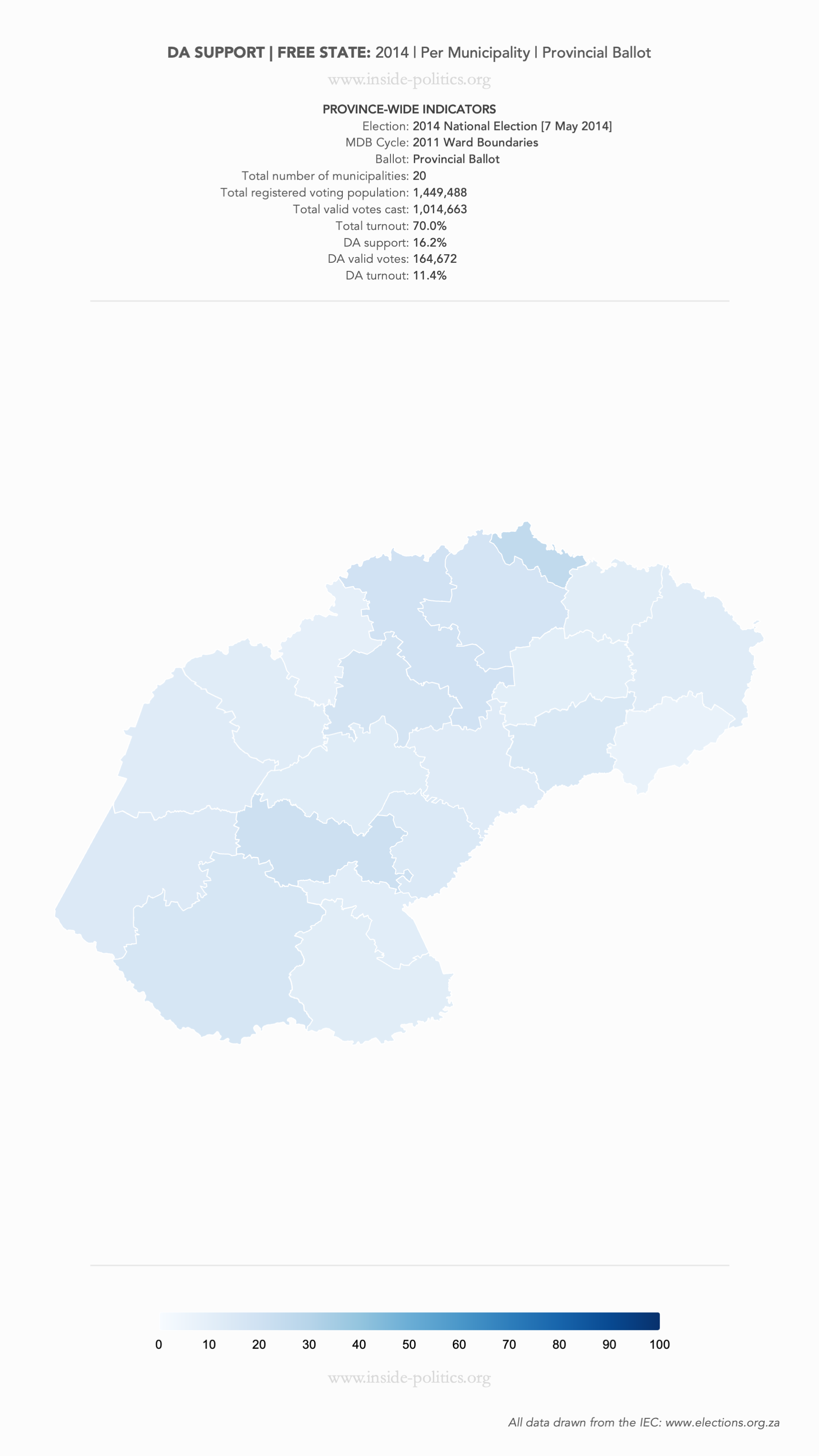 Heat Map: Free State | 2014 | DA Support by Municipality
