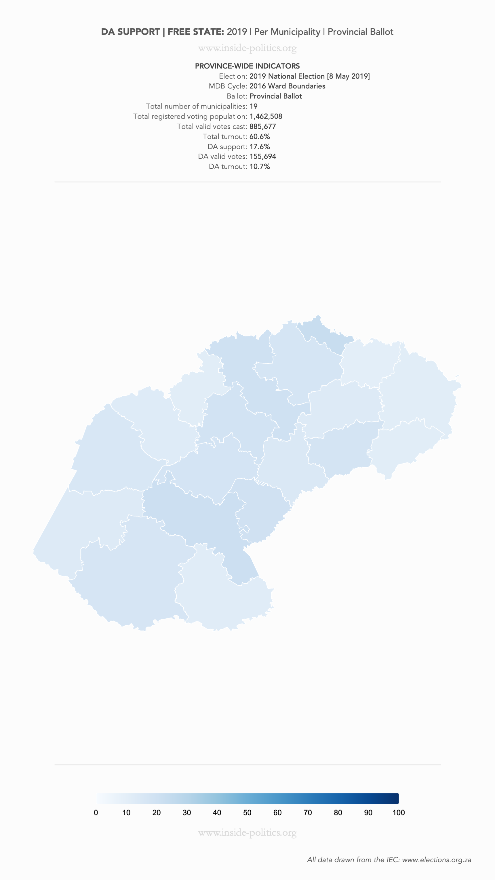 Heat Map: Free State | 2019 | DA Support by Municipality