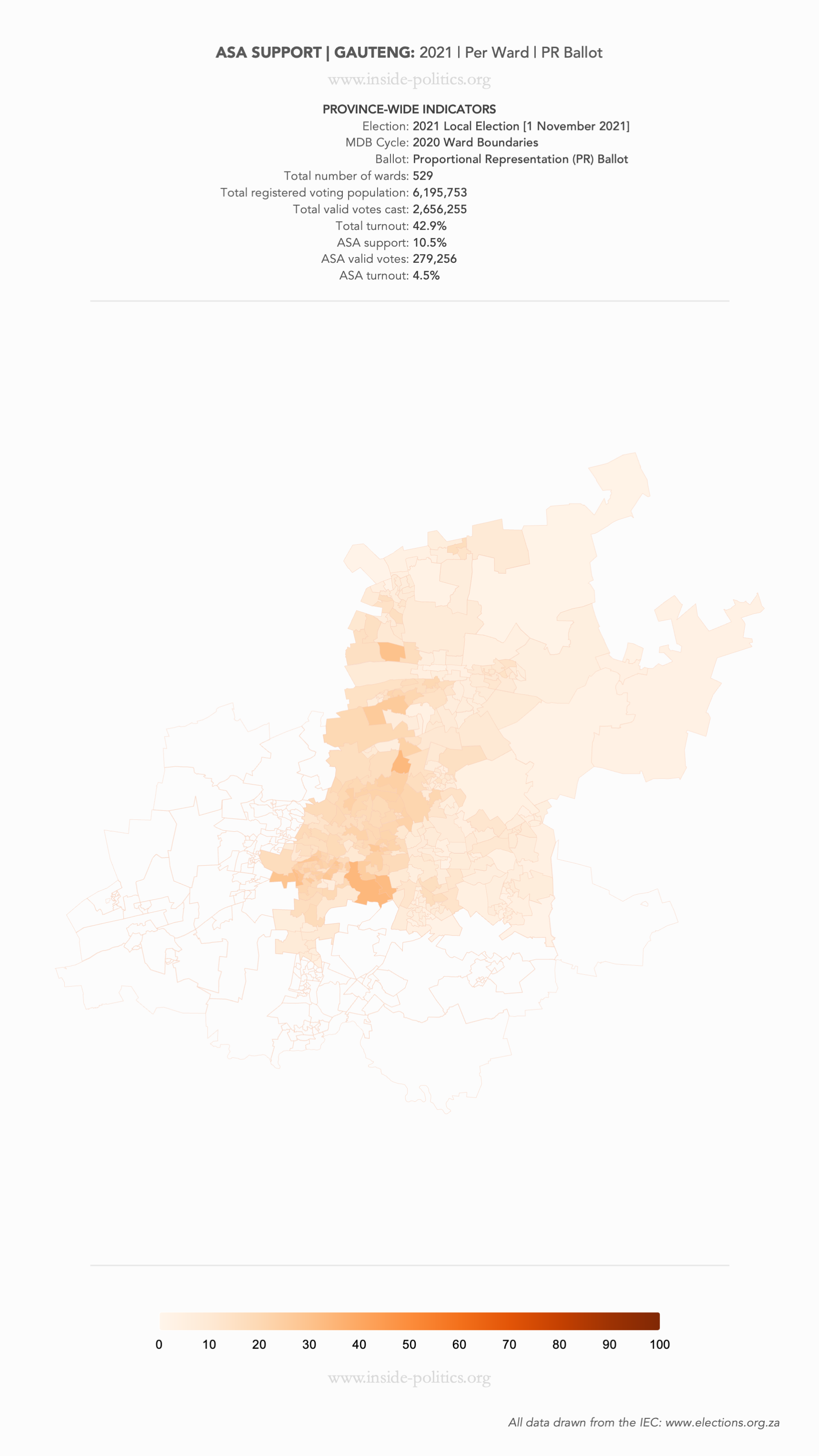 Heat Map: Gauteng | 2021 | ASA Support by Ward