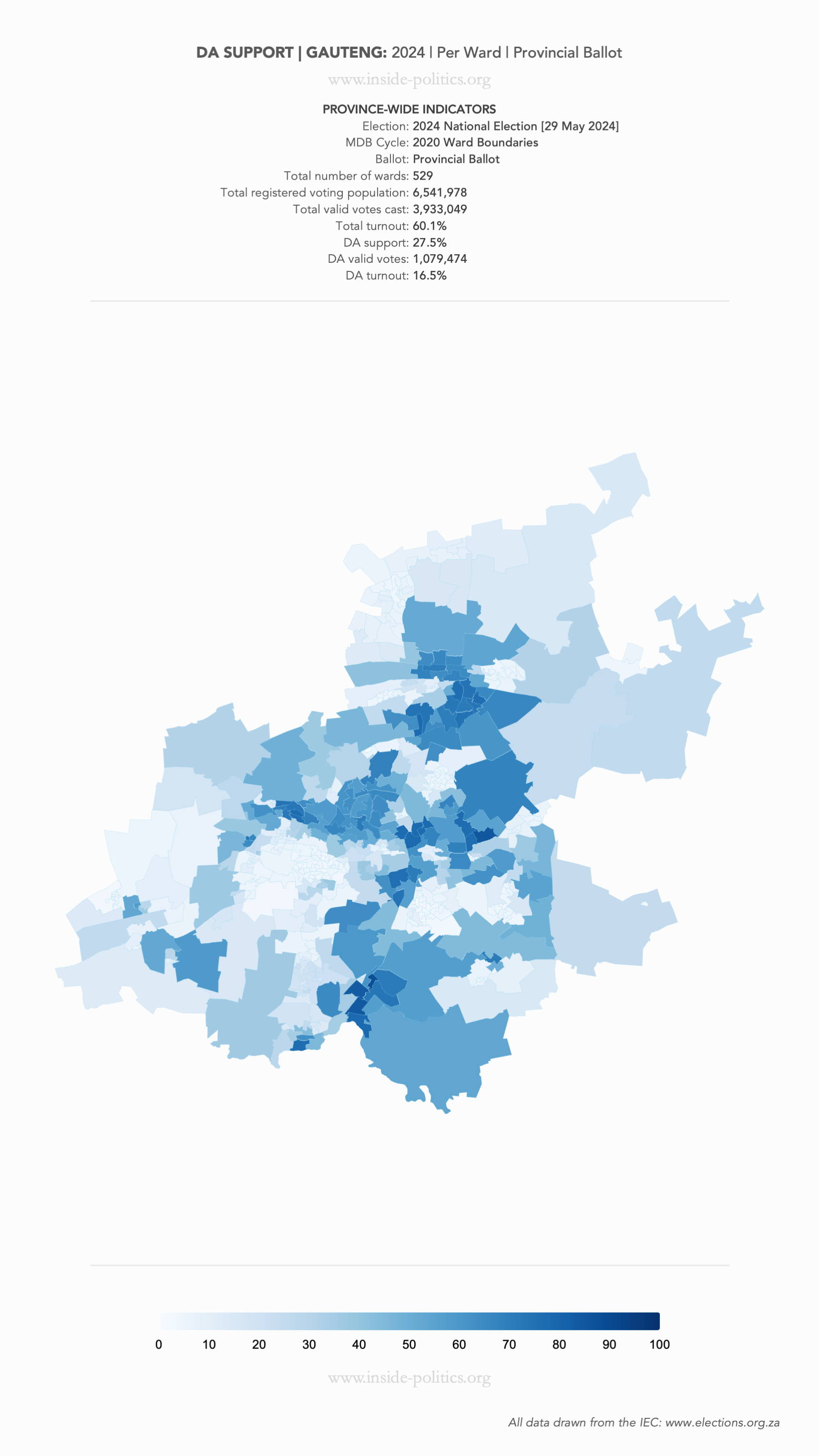 Heat Map: Gauteng | 2024 | DA Support by Ward