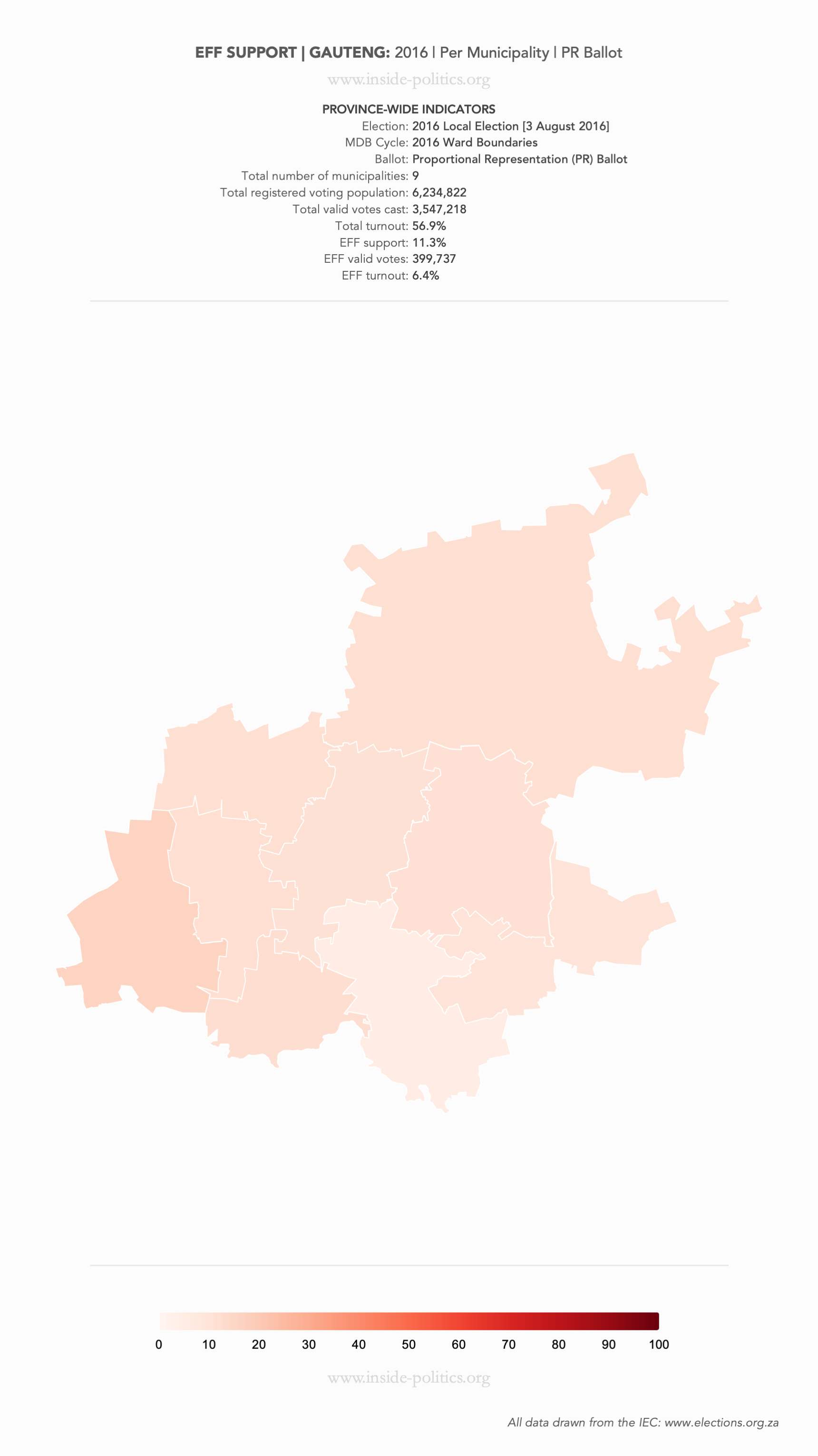 Heat Map: Gauteng | 2016 | EFF Support by Municipality