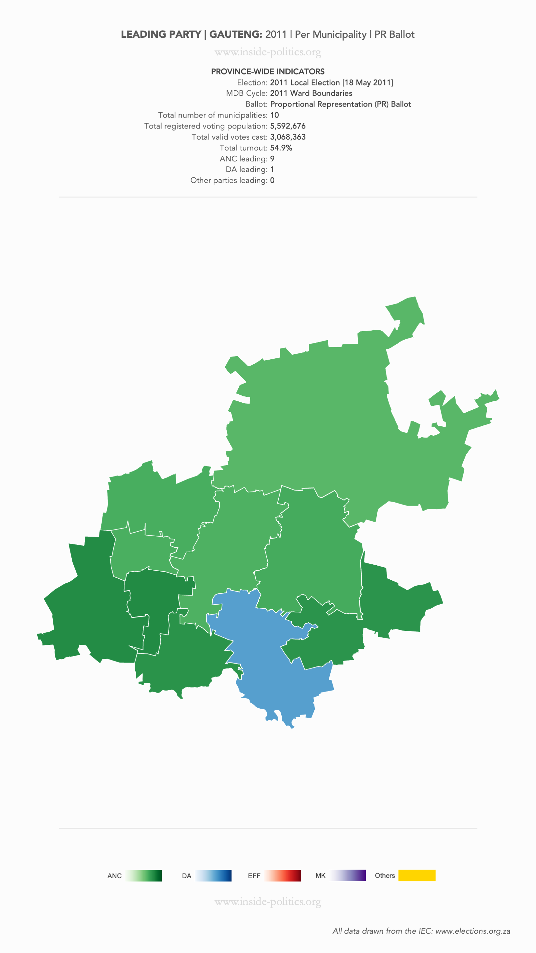 Heat Map: Gauteng | 2011 | Leading Party Support by Municipality