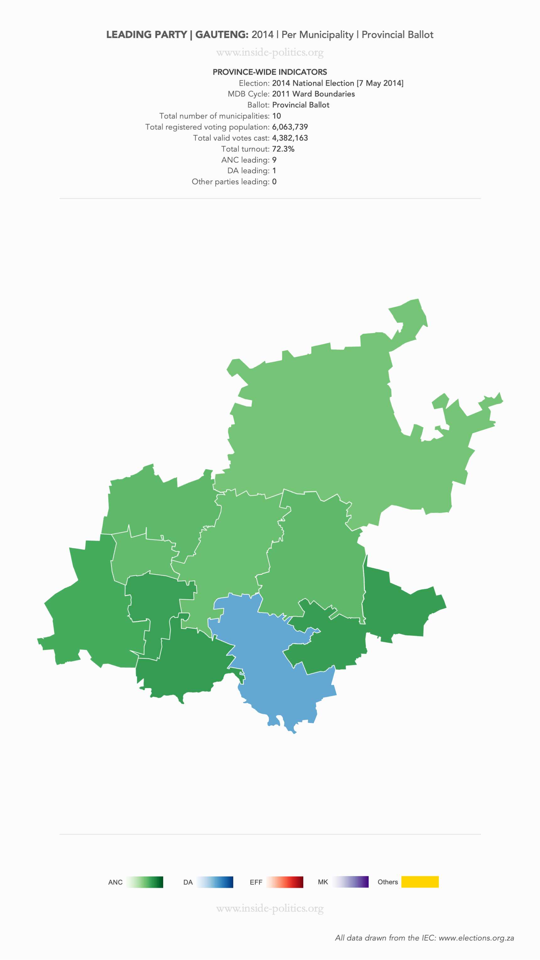 Heat Map: Gauteng | 2014 | Leading Party Support by Municipality