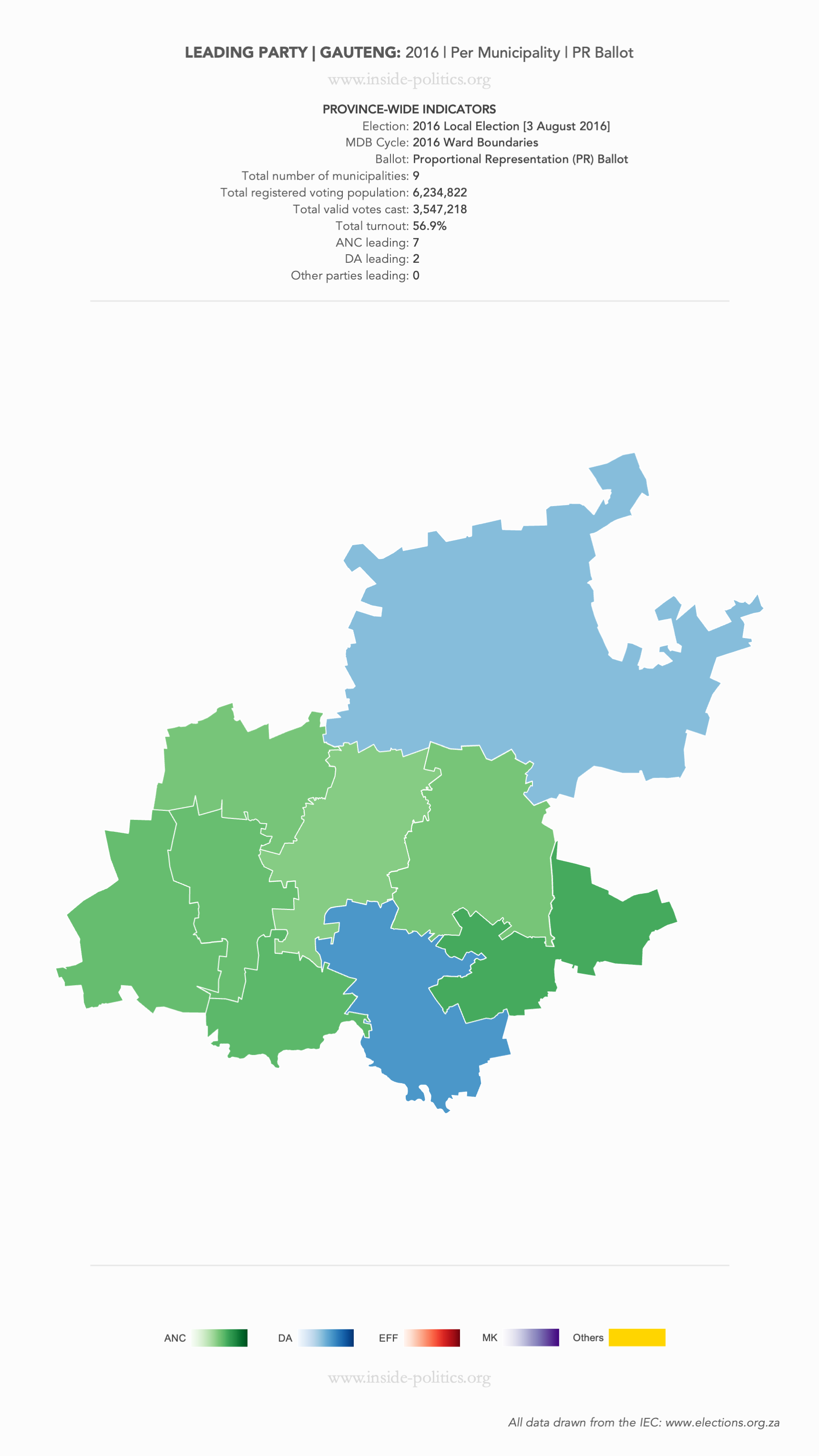 Heat Map: Gauteng | 2016 | Leading Party Support by Municipality