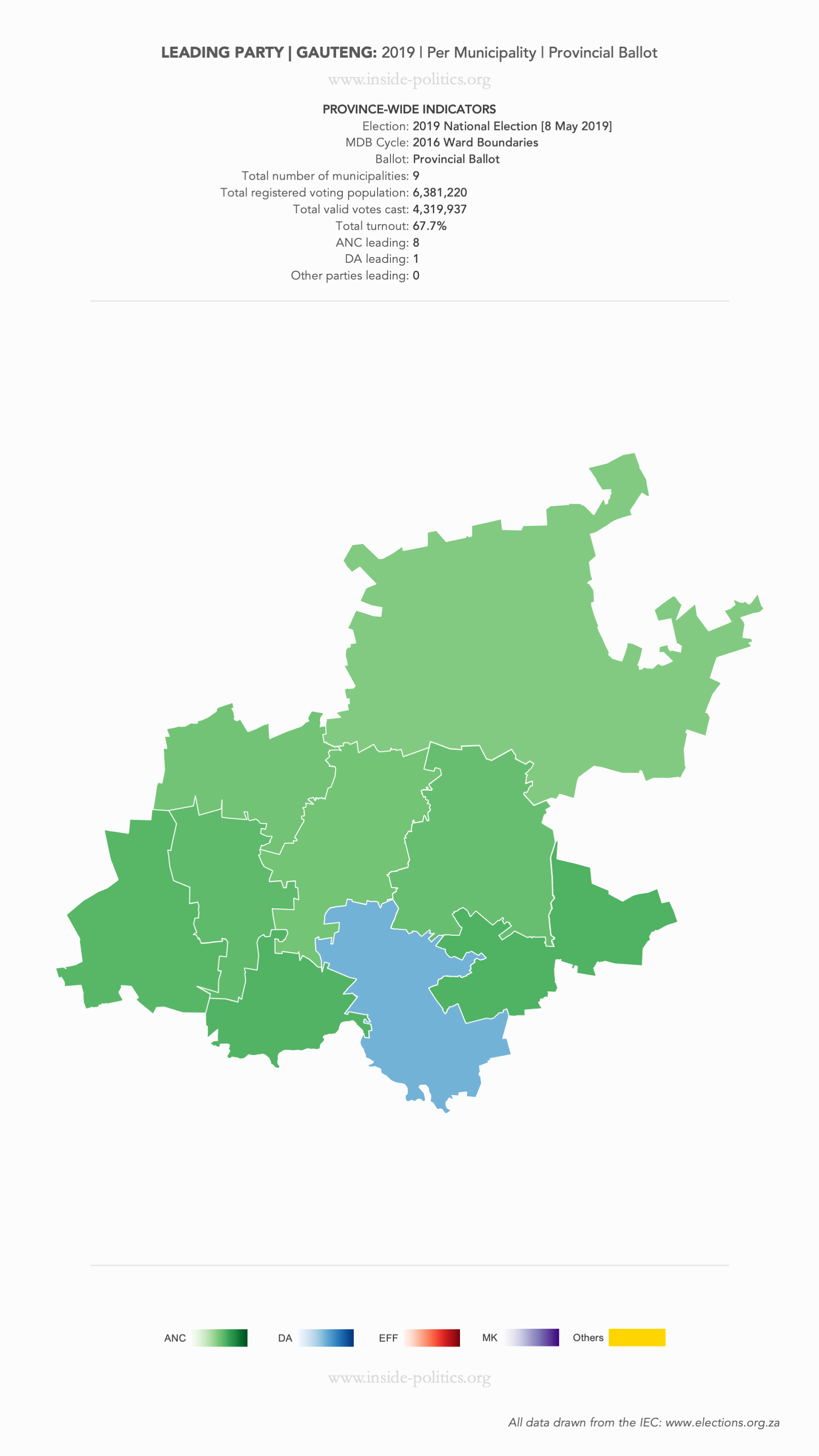 Heat Map: Gauteng | 2019 | Leading Party Support by Municipality
