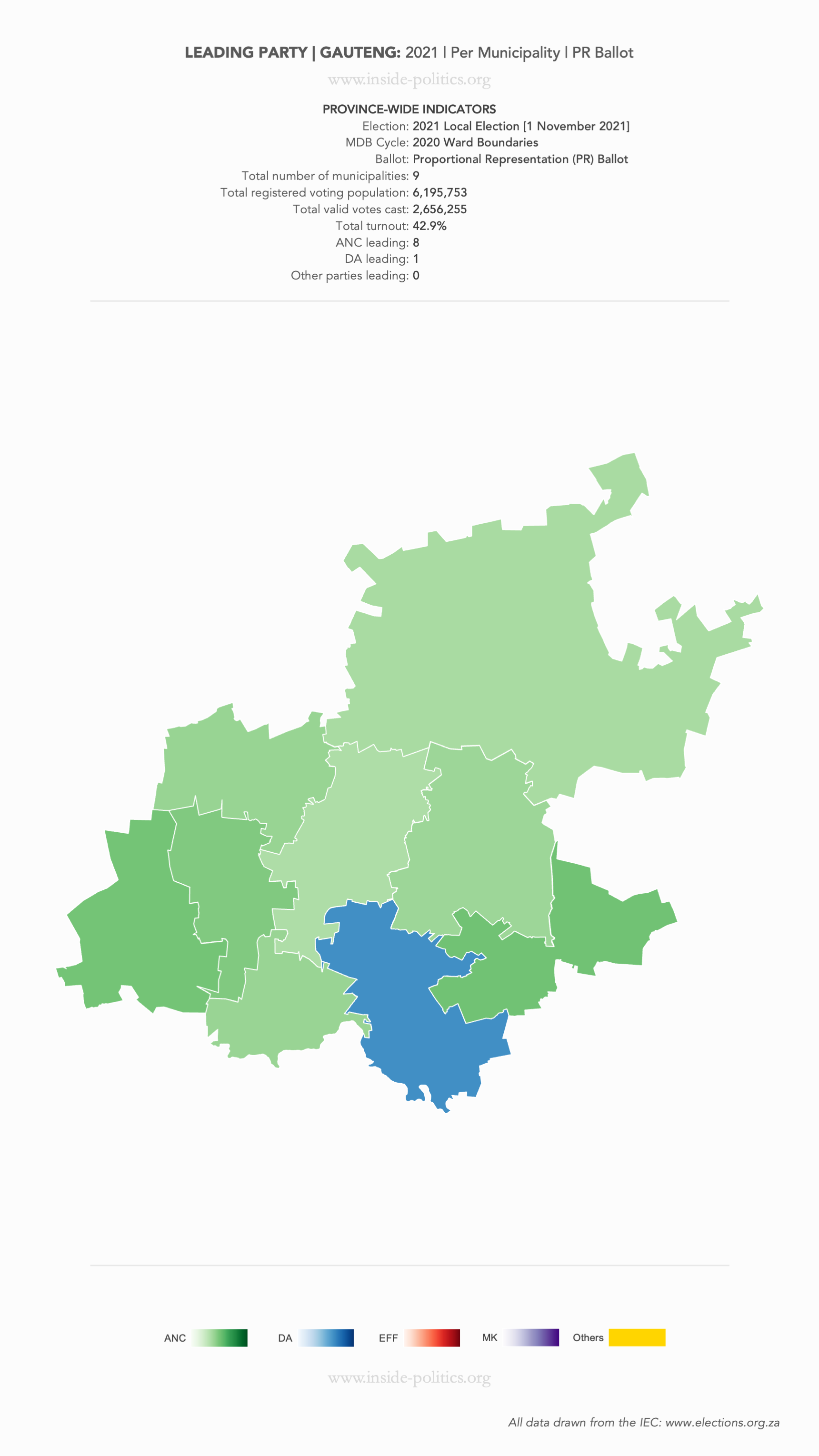 Heat Map: Gauteng | 2021 | Leading Party Support by Municipality