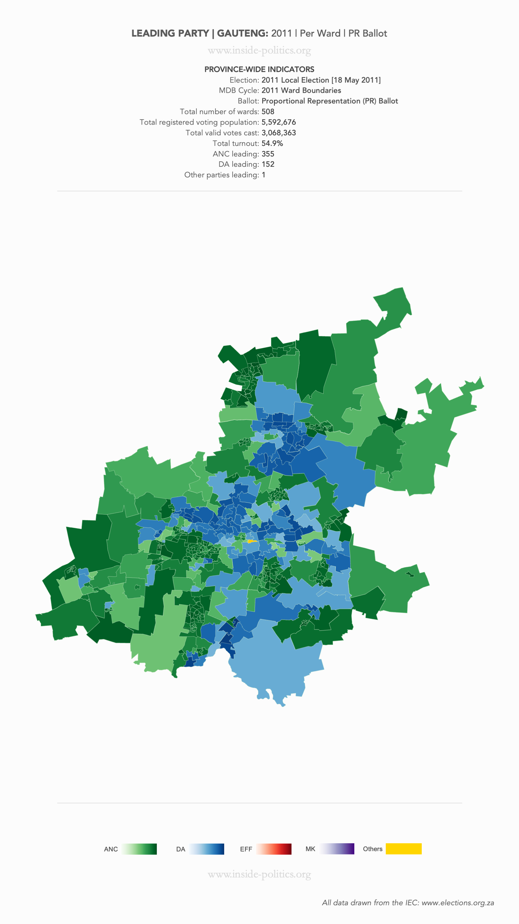 Heat Map: Gauteng | 2011 | Leading Party Support by Ward