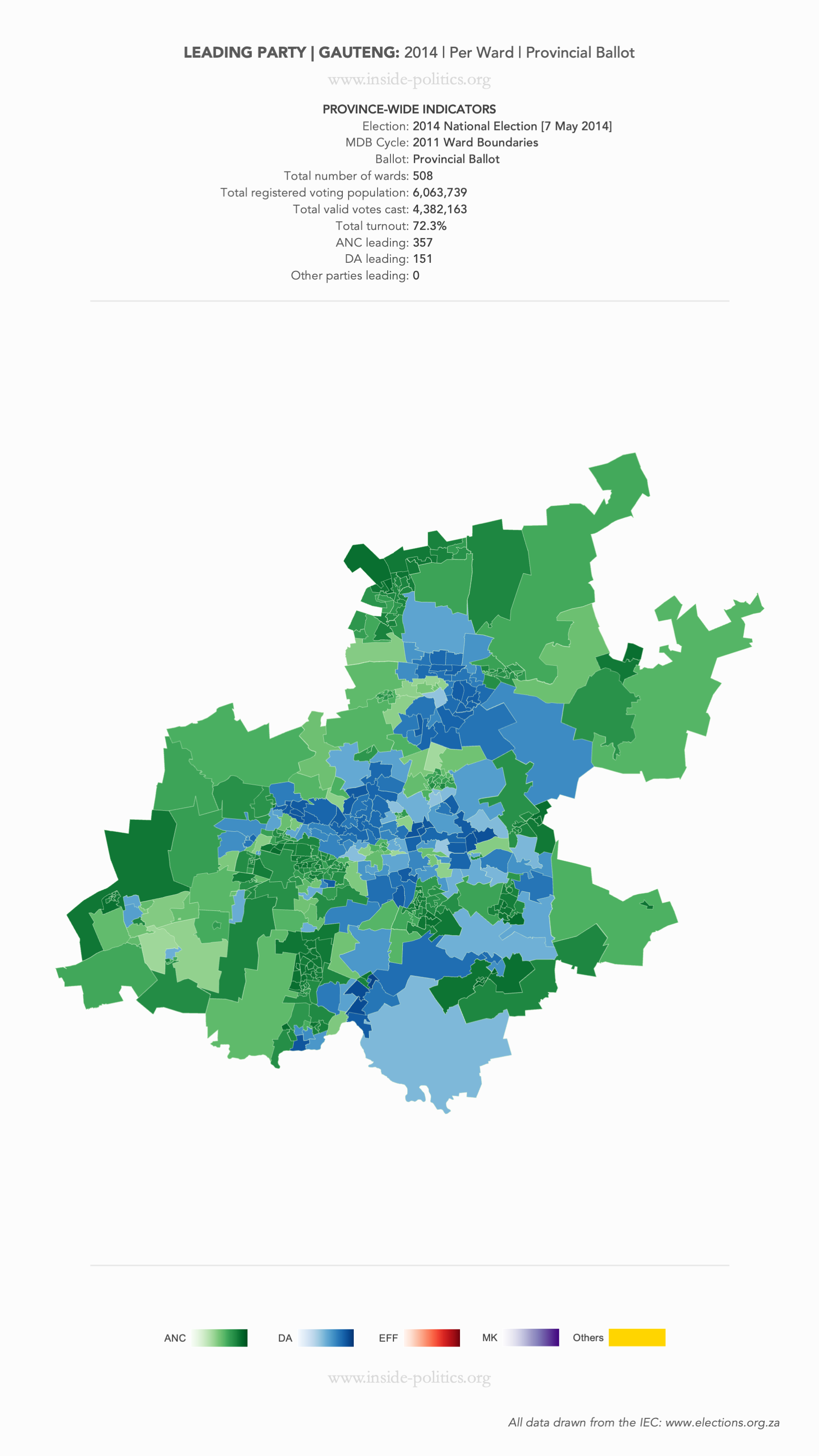 Heat Map: Gauteng | 2014 | Leading Party Support by Ward