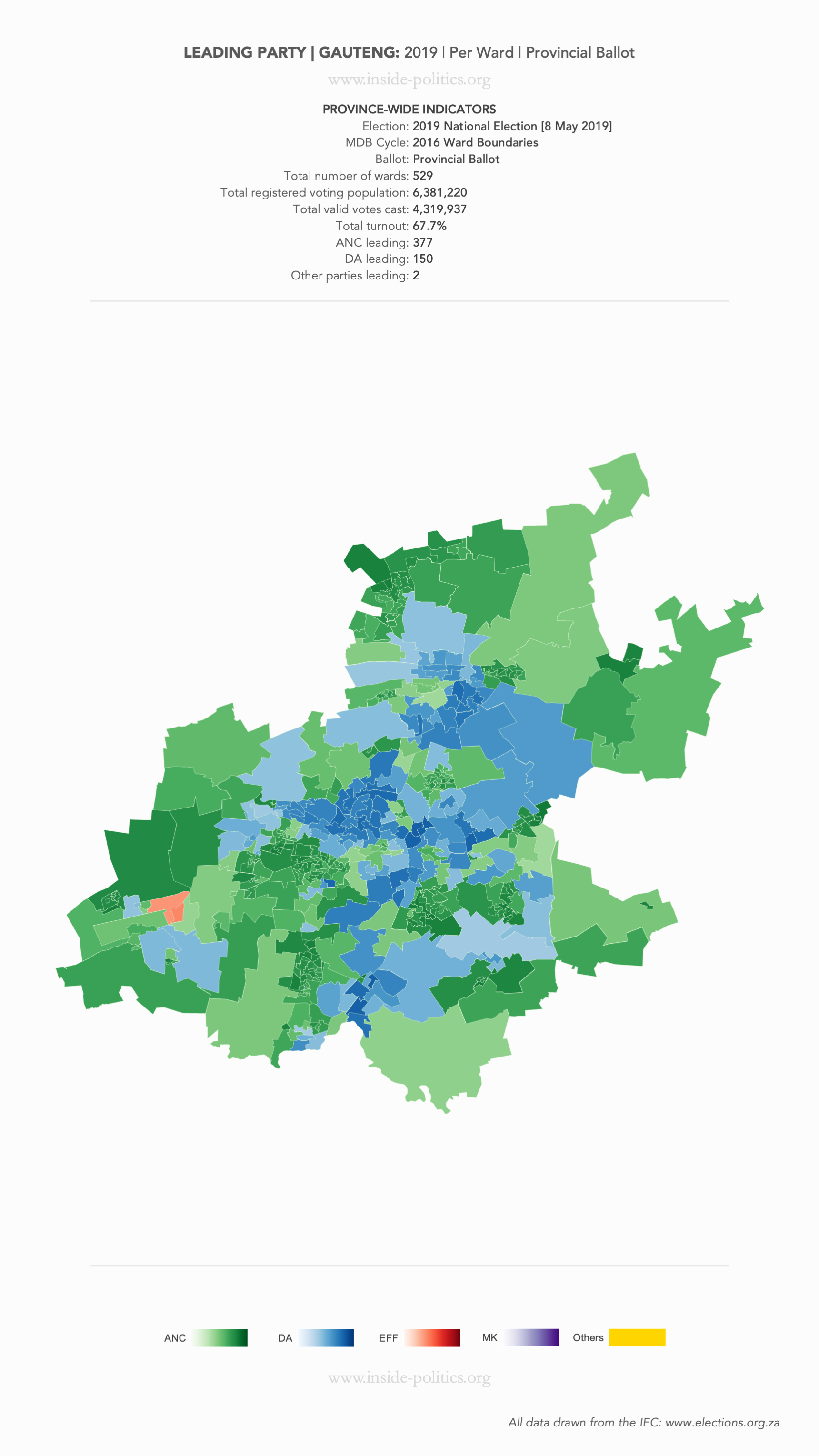 Heat Map: Gauteng | 2019 | Leading Party Support by Ward