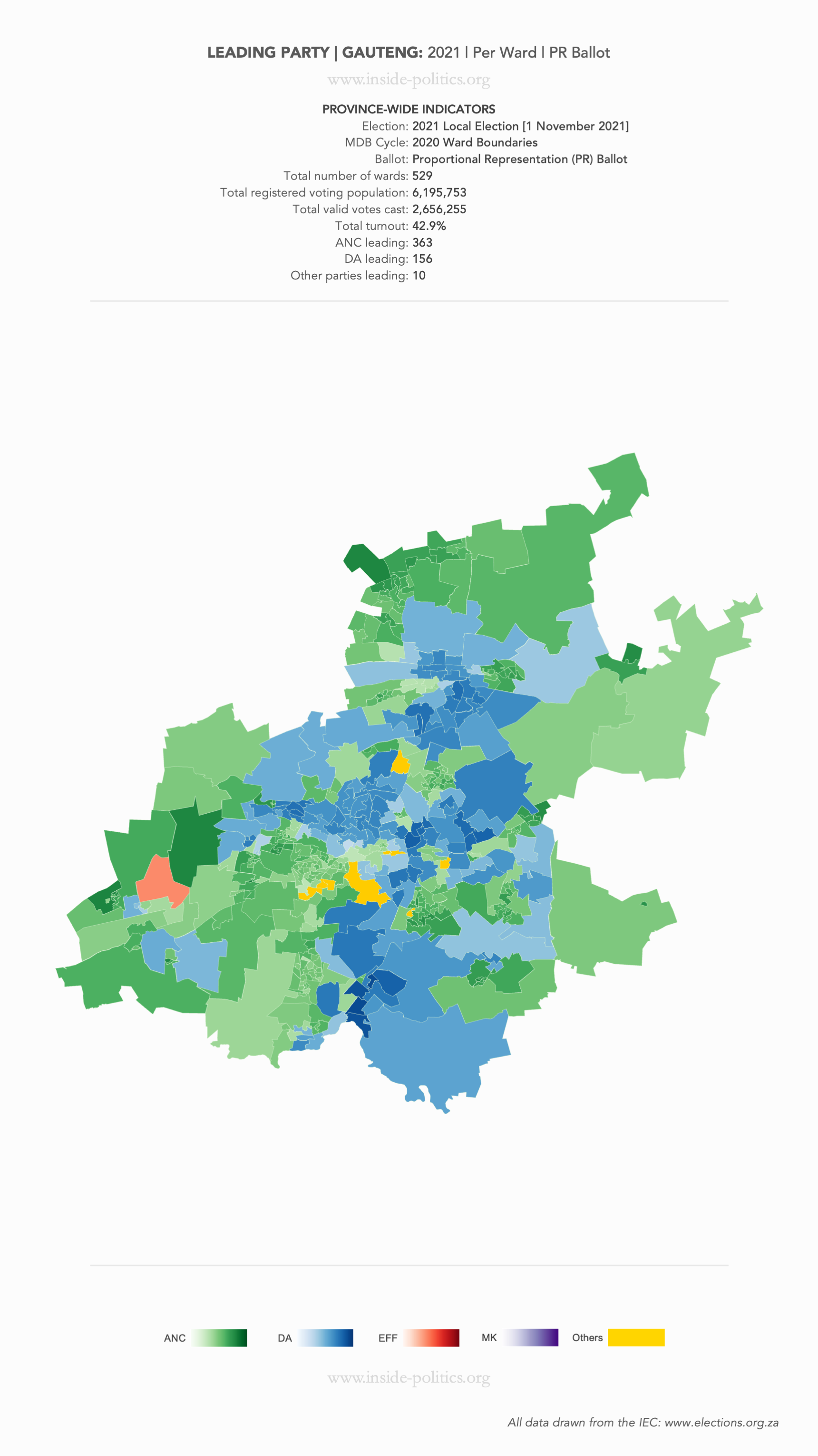 Heat Map: Gauteng | 2021 | Leading Party Support by Ward