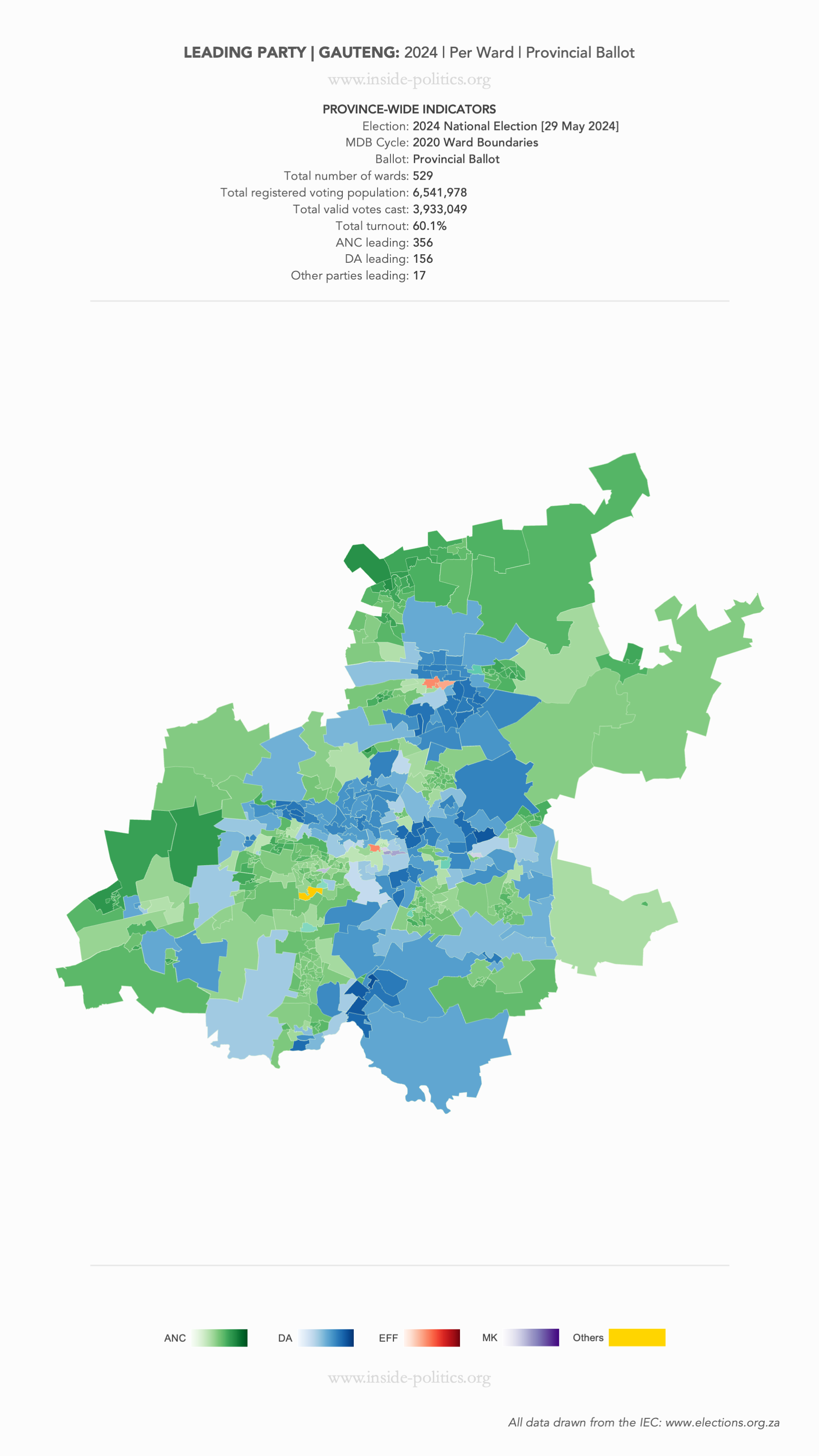 Heat Map: Gauteng | 2024 | Leading Party Support by Ward