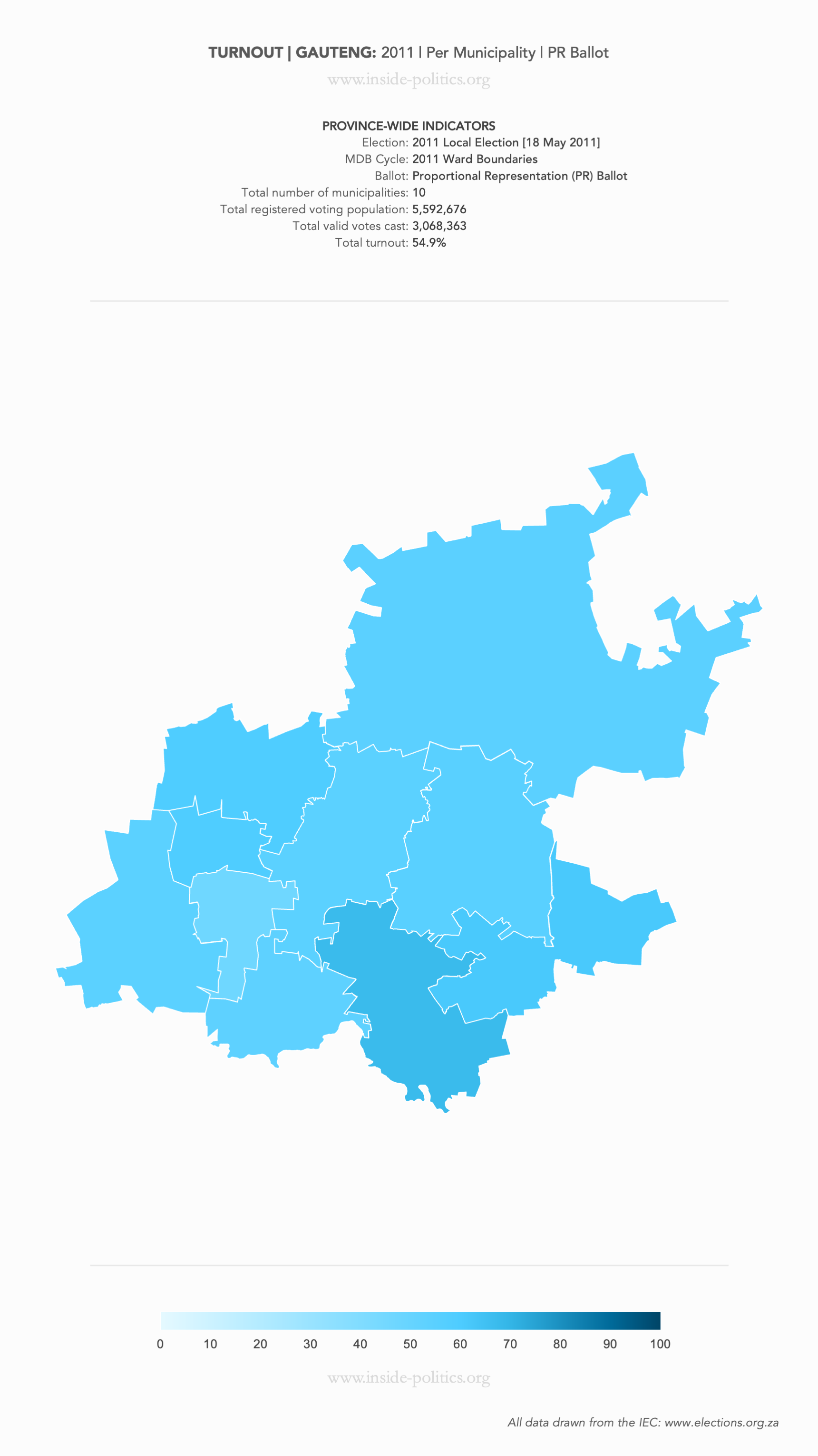 Heat Map: Gauteng | 2011 | Turnout by Municipality
