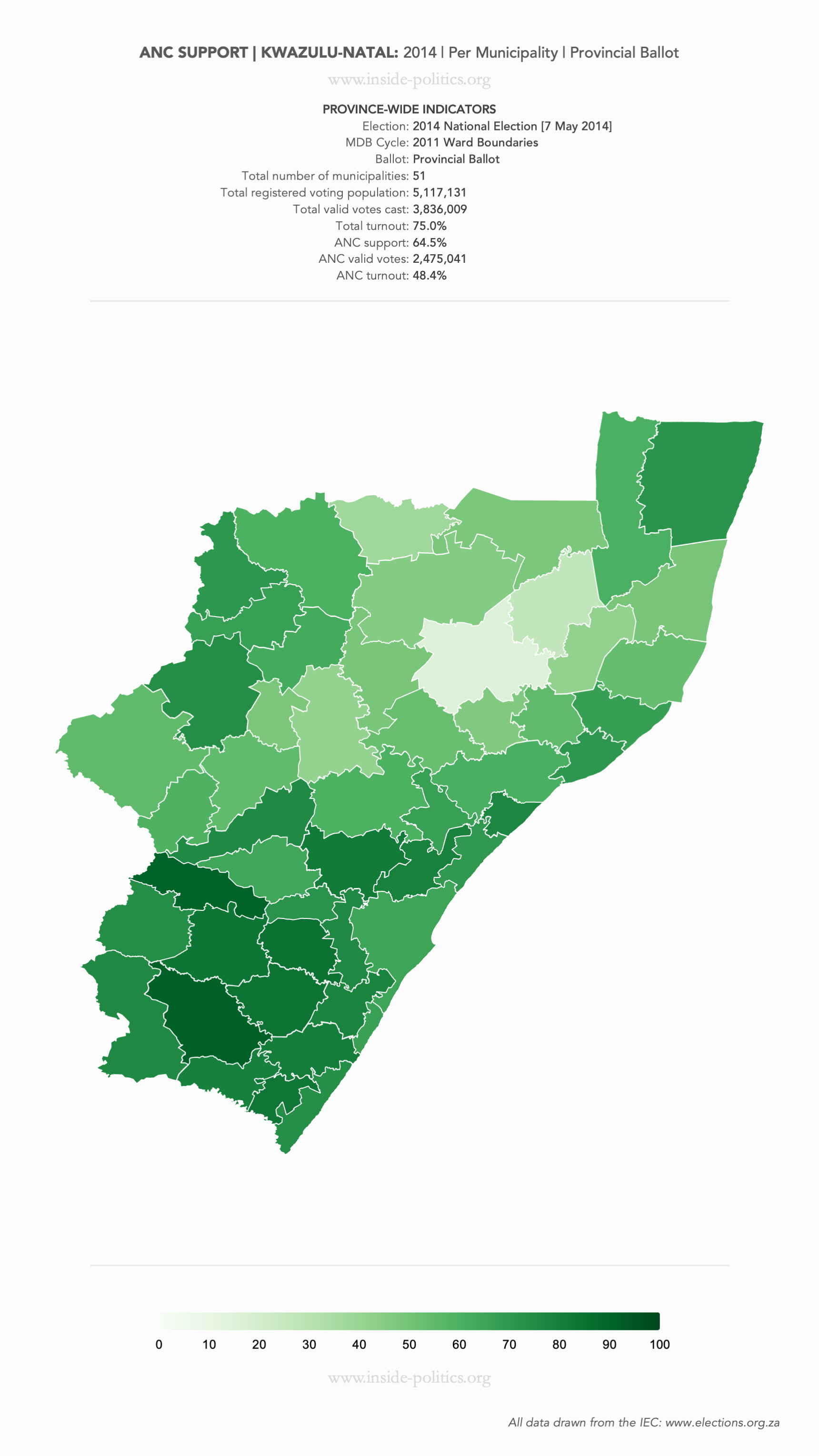Heat Map: KwaZulu-Natal | 2014 | ANC Support by Municipality