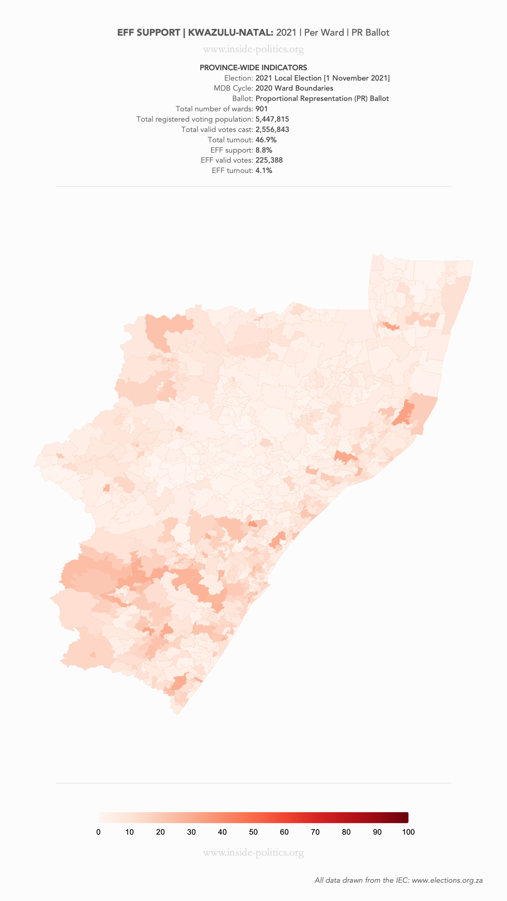 Election 2026/7 Resource: Heat Map | KZN | EFF Support | By Ward