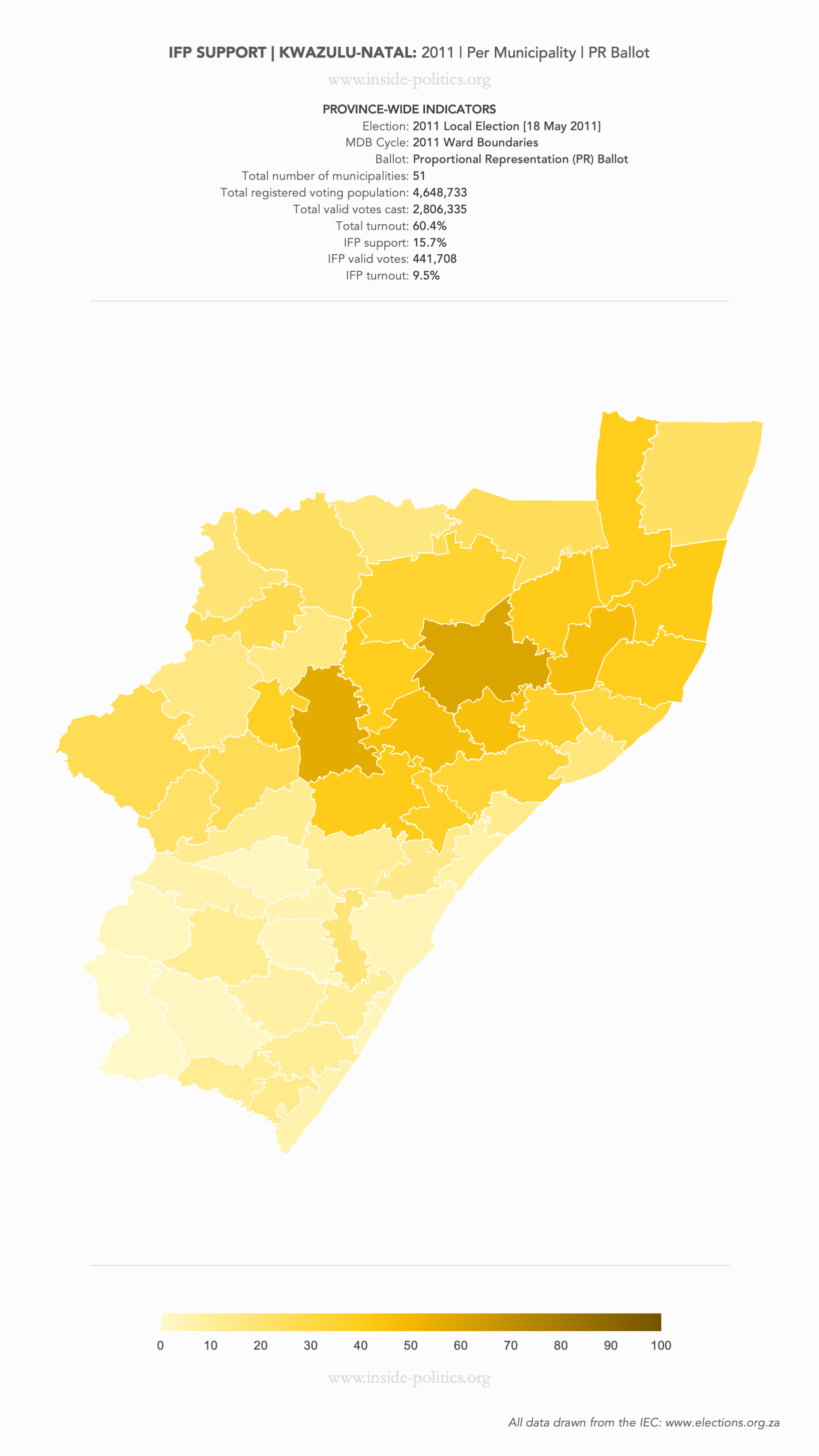 Heat Map: KwaZulu-Natal | 2011 | IFP Support by Municipality