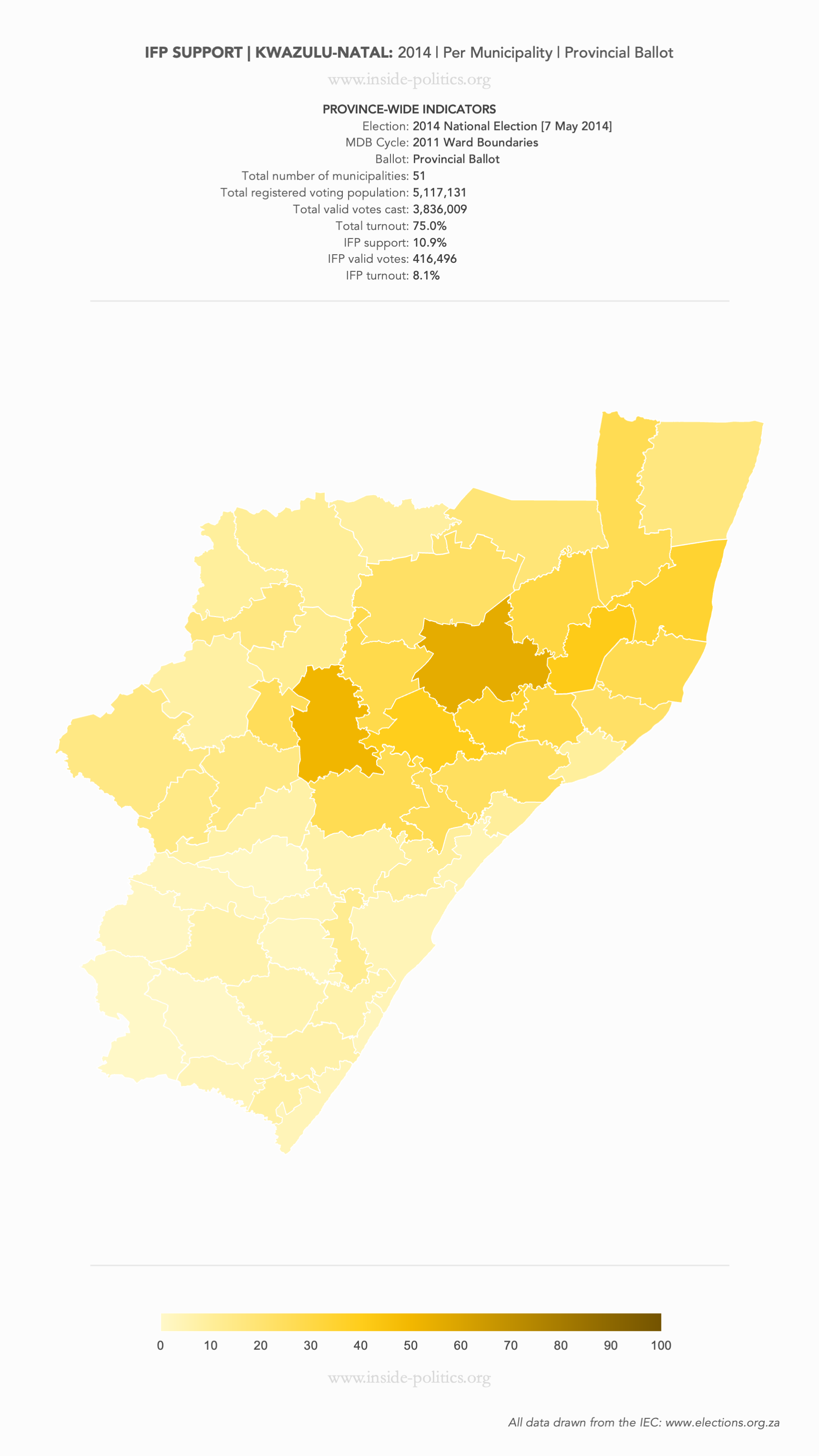 Heat Map: KwaZulu-Natal | 2014 | IFP Support by Municipality