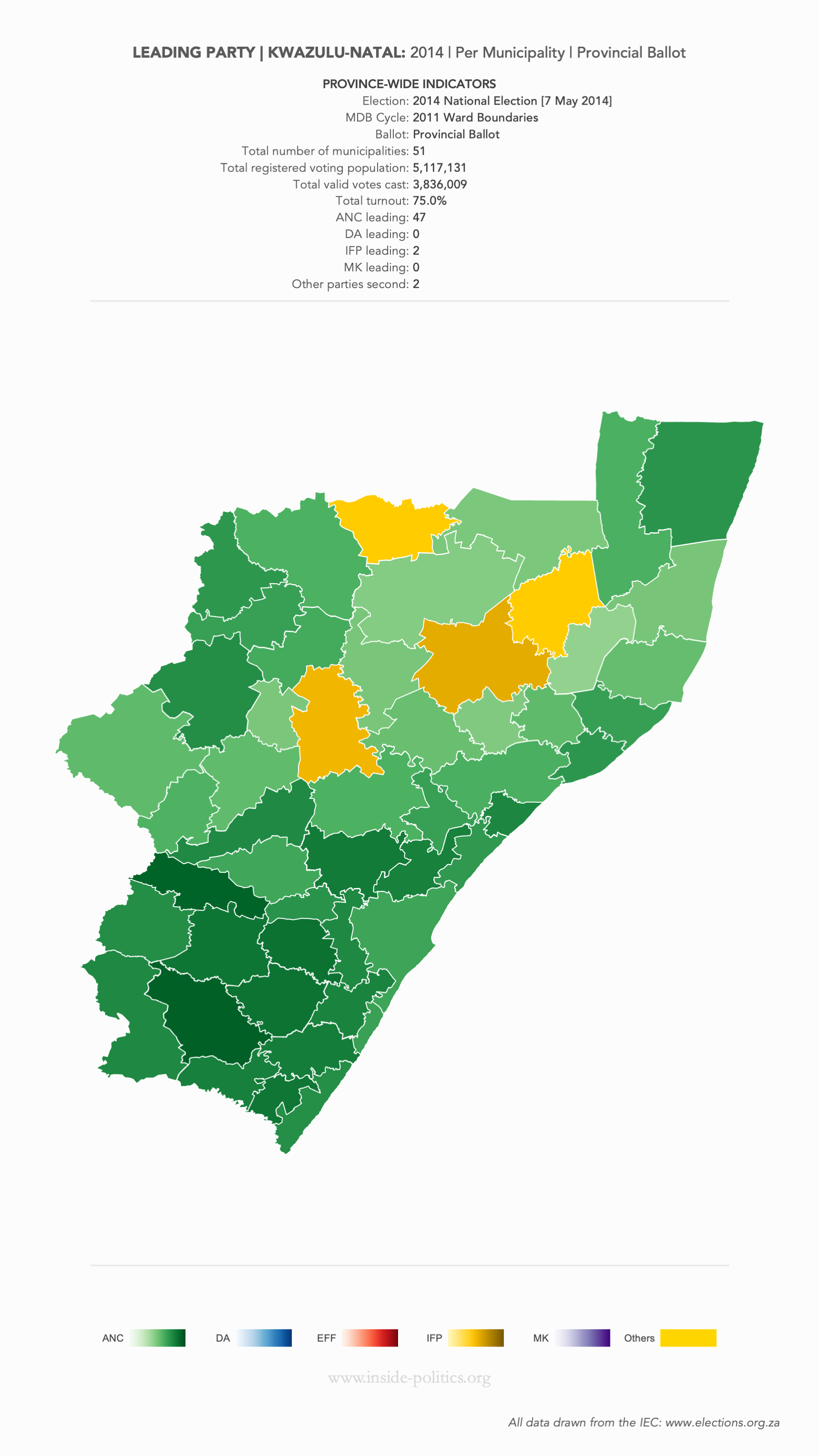 Heat Map: KwaZulu-Natal | 2014 | Leading Party Support by Municipality