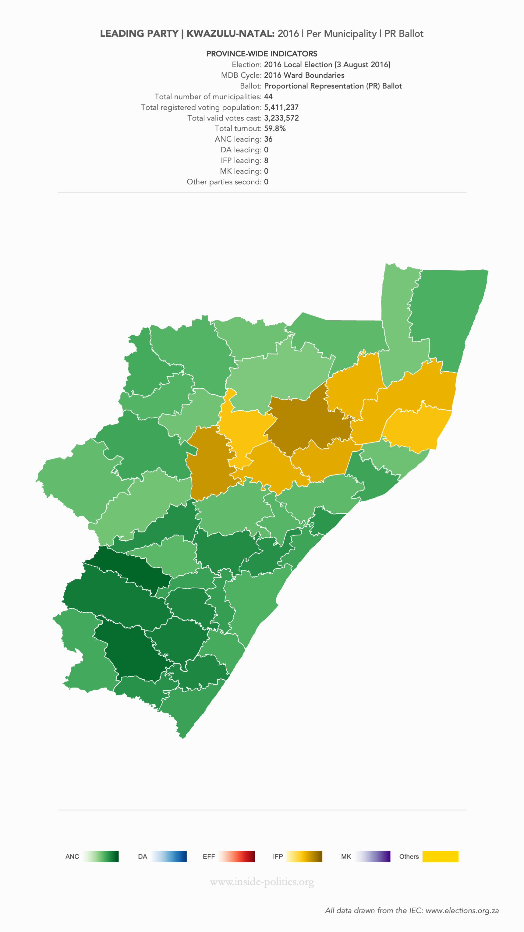 Heat Map: KwaZulu-Natal | 2016 | Leading Party Support by Municipality