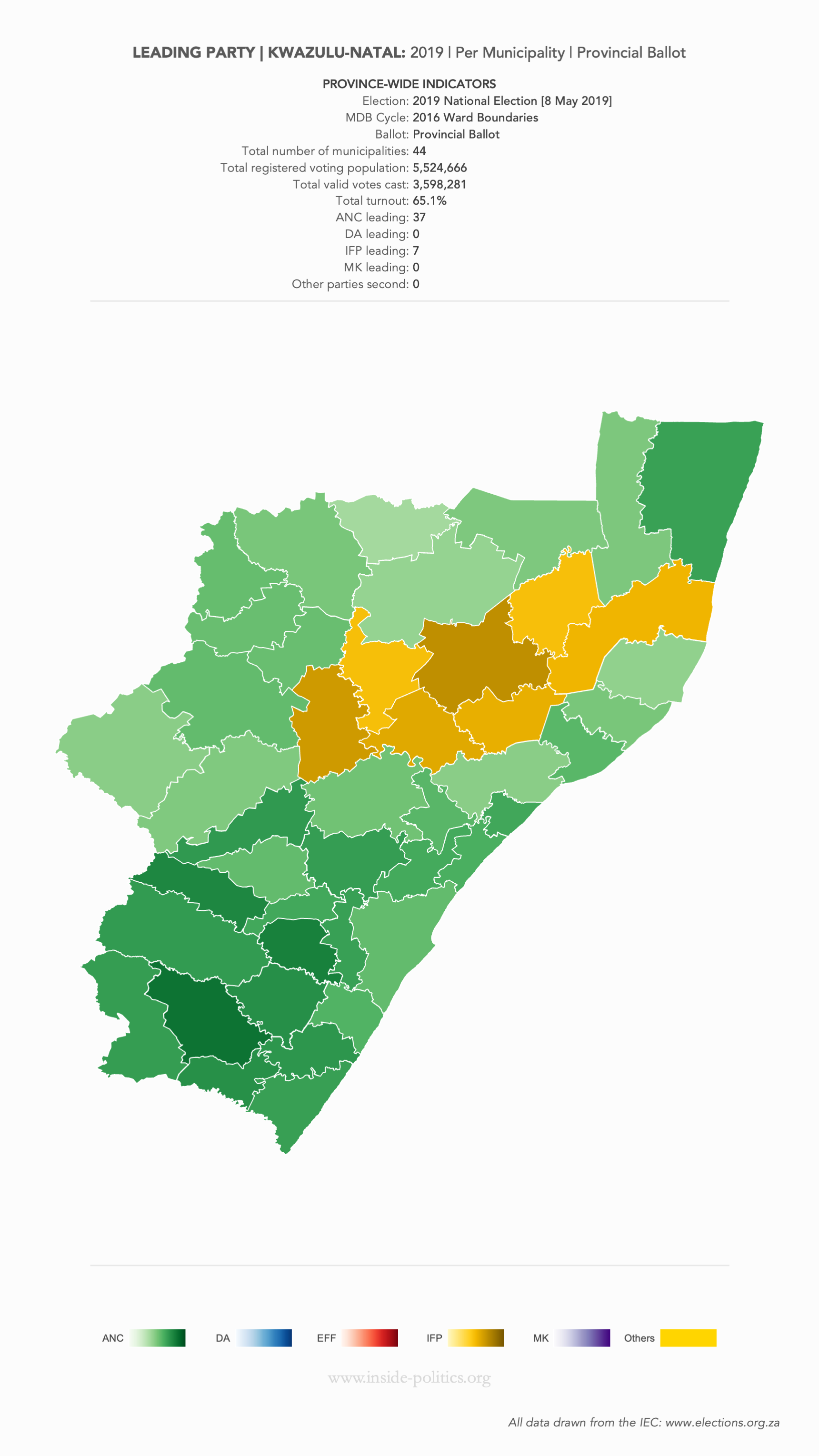 Heat Map: KwaZulu-Natal | 2019 | Leading Party Support by Municipality