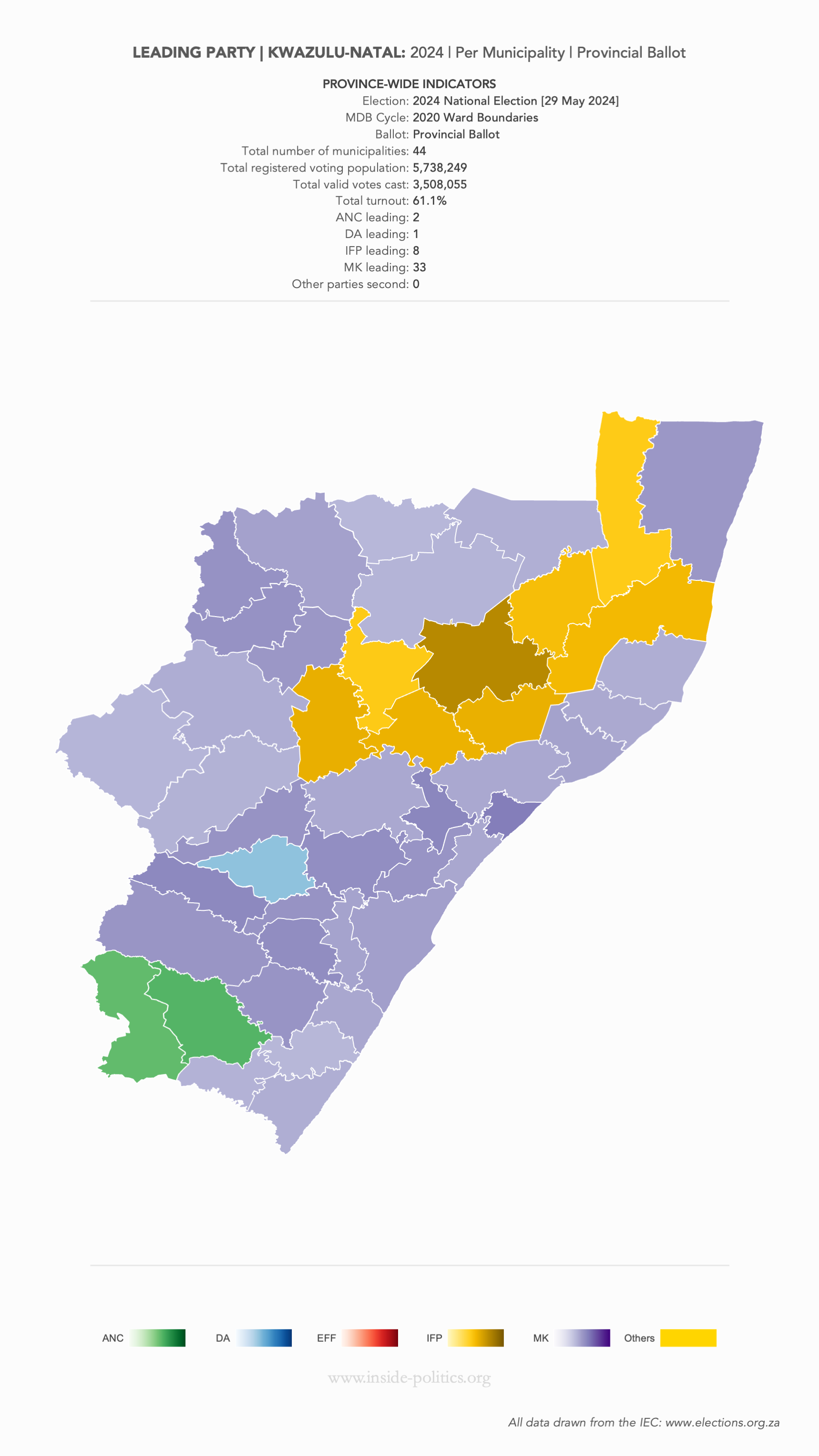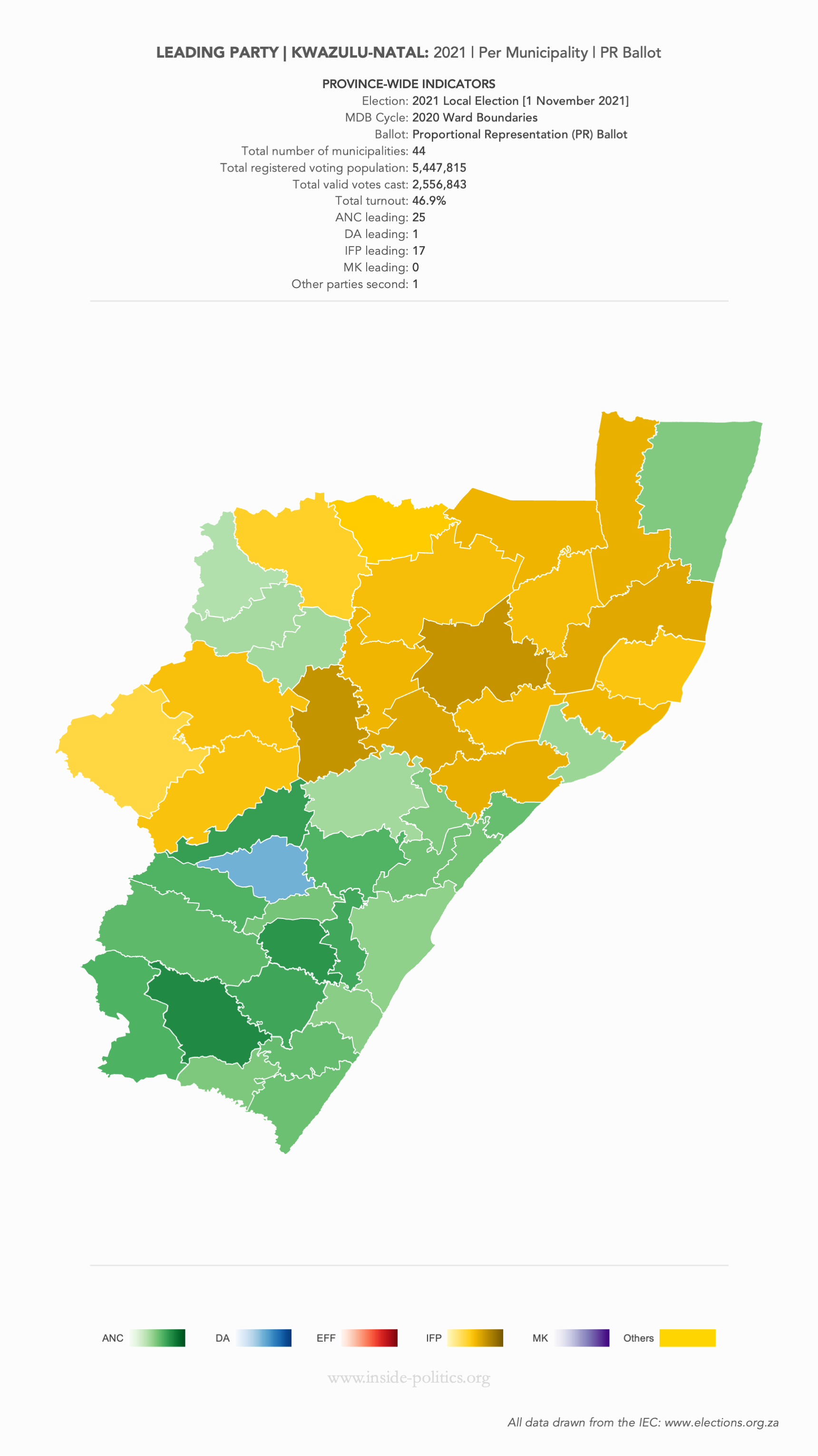 Election 2026/7 Resource: Heat Map | KZN | Leading Party Support | By Municipality