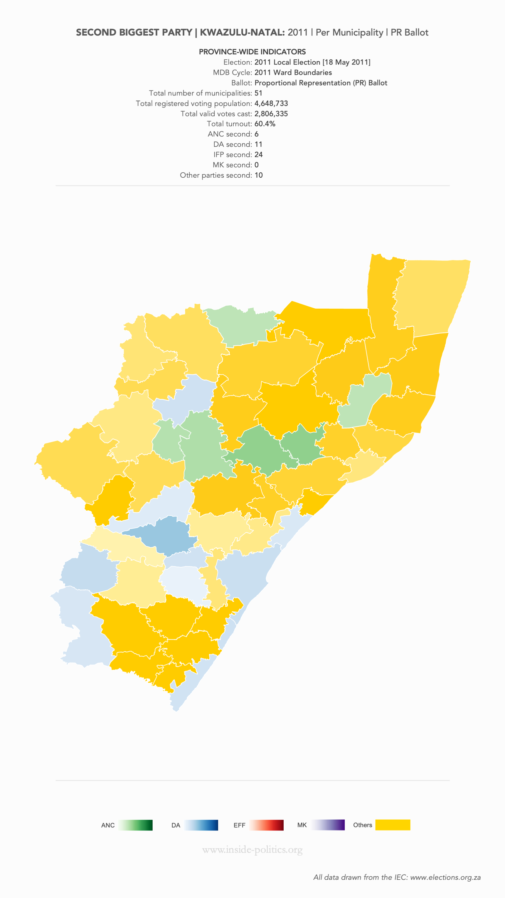 Heat Map: KwaZulu-Natal | 2011 | Second Biggest Party by Municipality