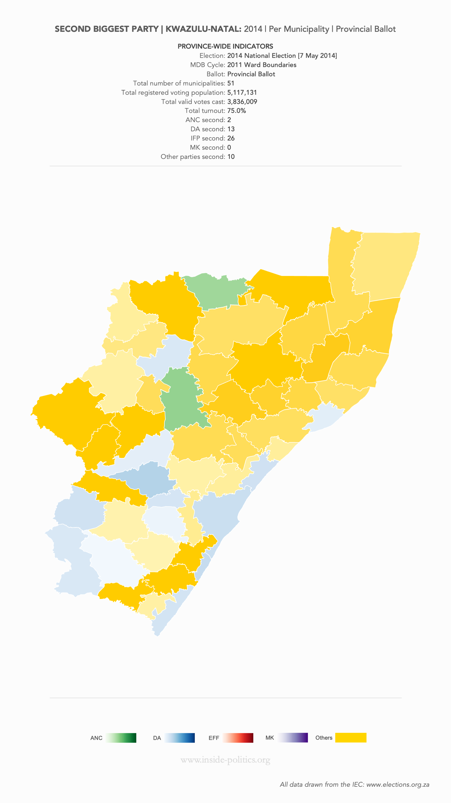 Heat Map: KwaZulu-Natal | 2014 | Second Biggest Party by Municipality
