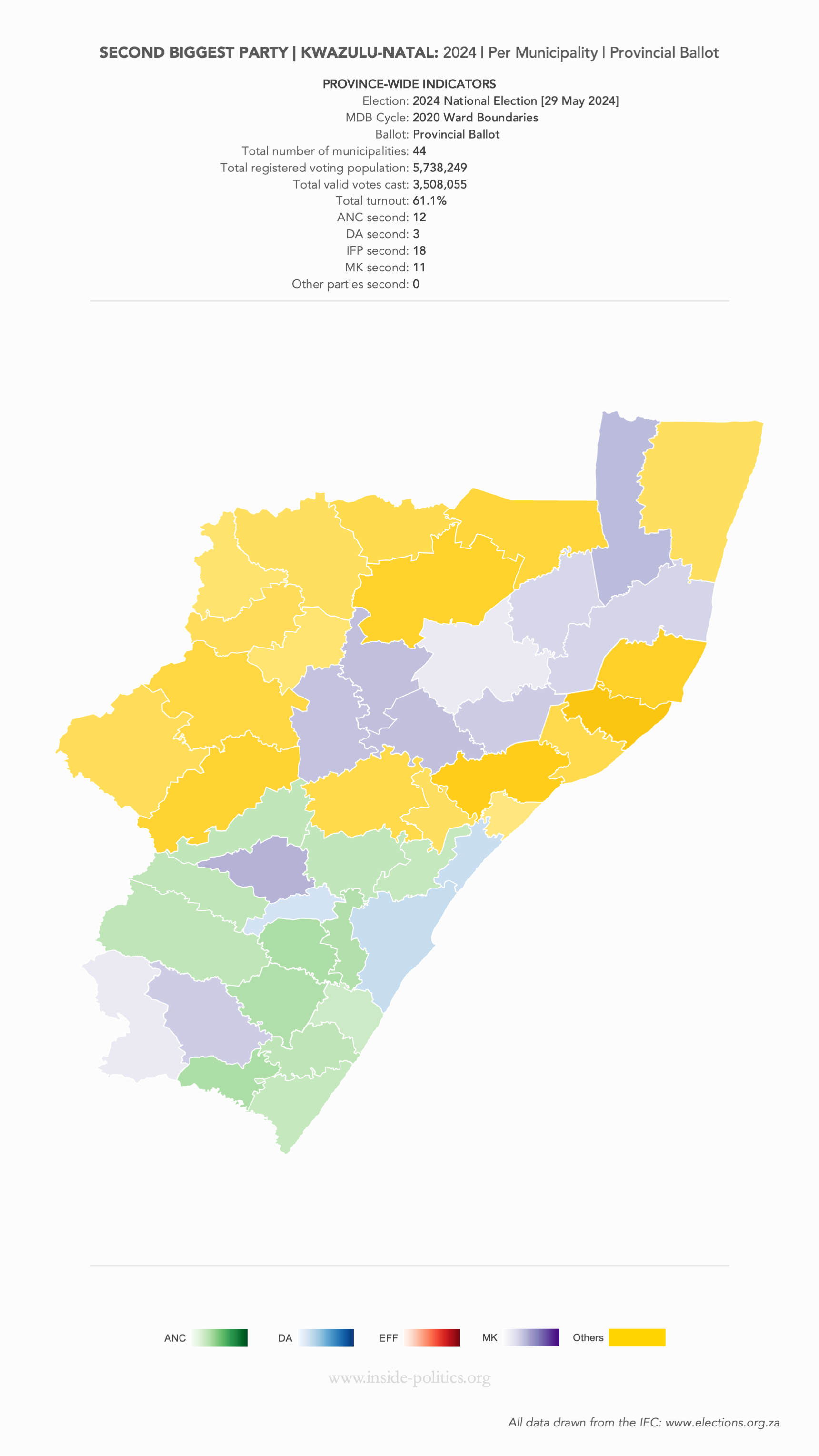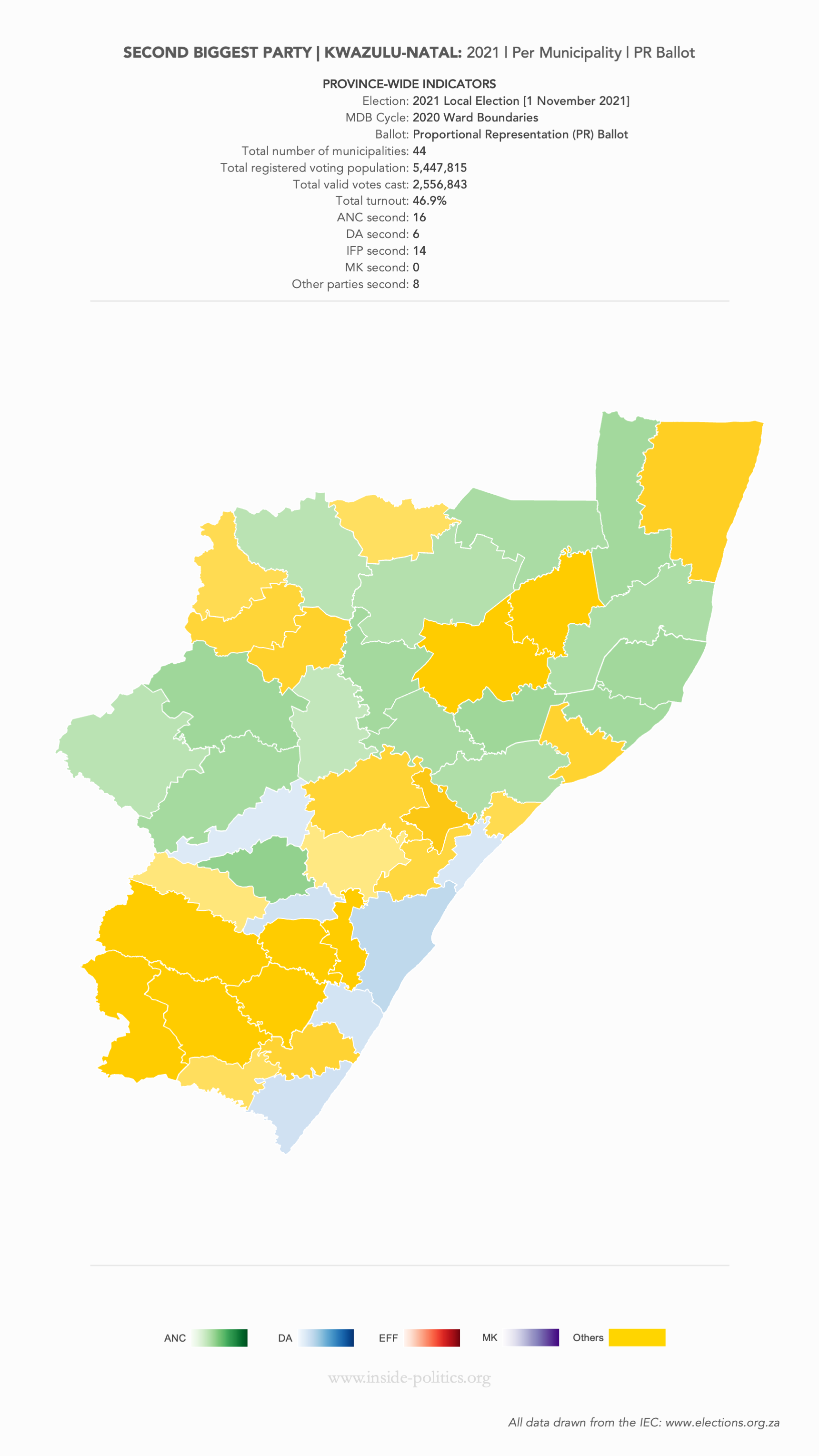 Election 2026/7 Resource: Heat Map | KZN | Second Biggest Party | By Municipality