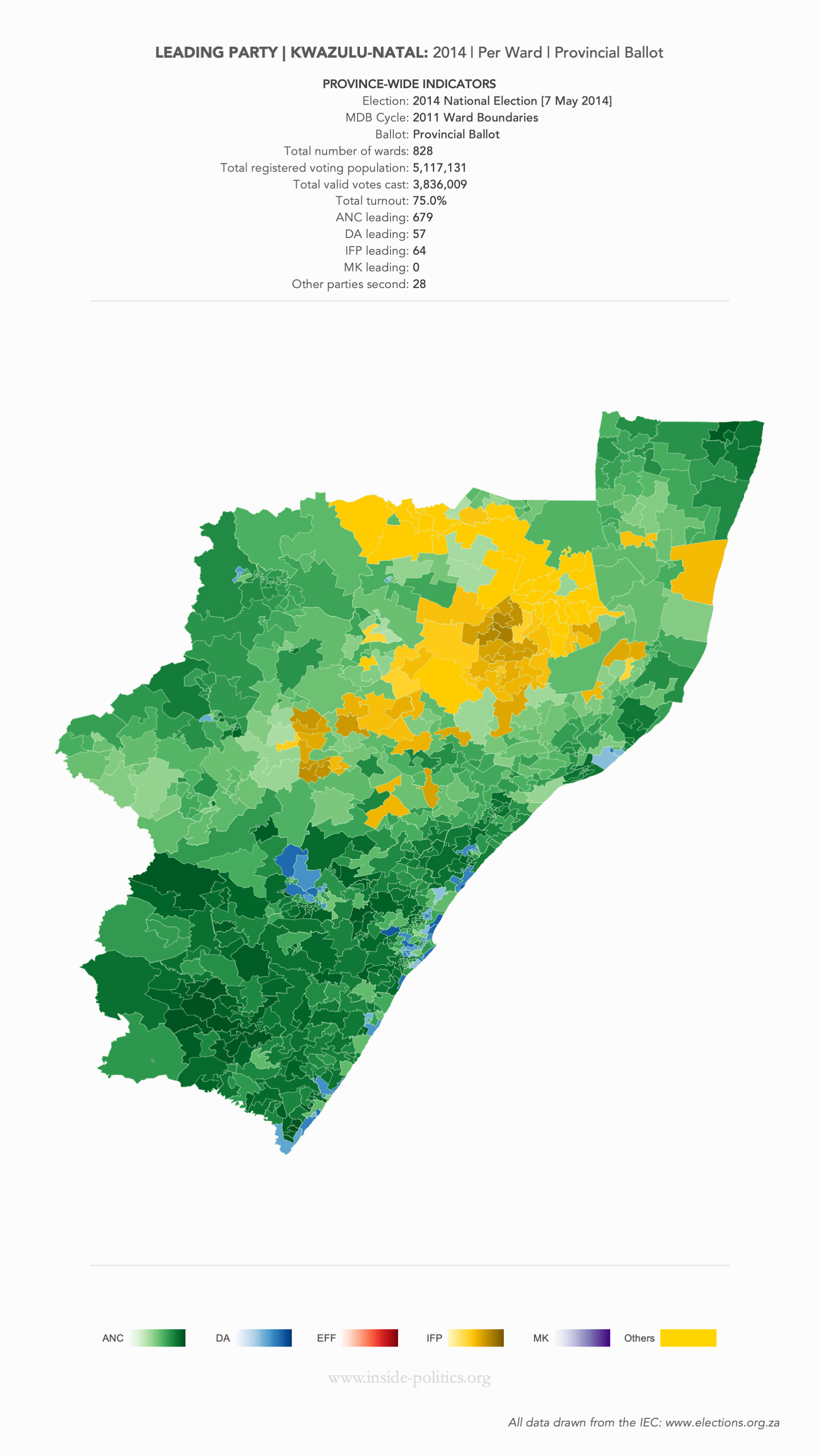 Heat Map: KwaZulu-Natal | 2014 | Leading Party Support by Ward