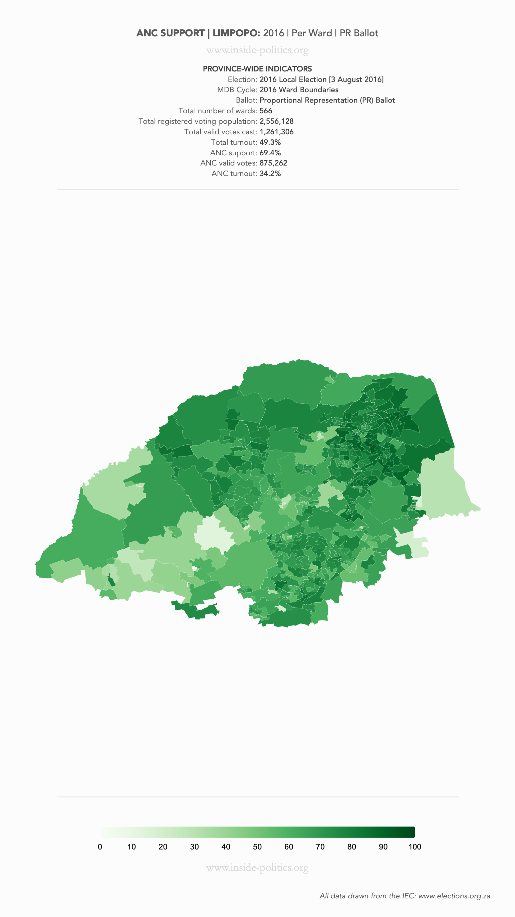 Heat Map: Limpopo | 2016 | ANC Support by Ward
