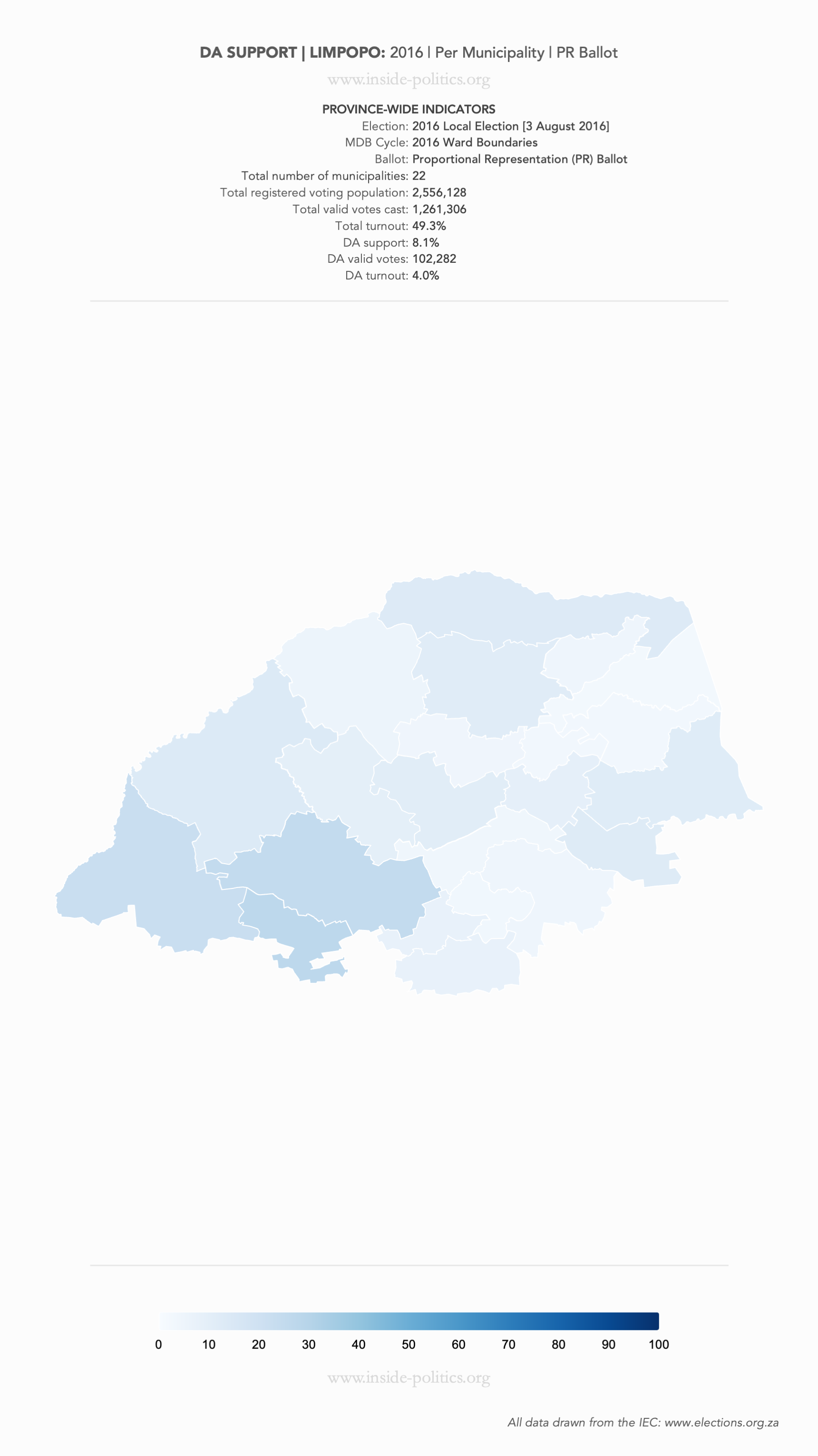 Heat Map: Limpopo | 2016 | DA Support by Municipality