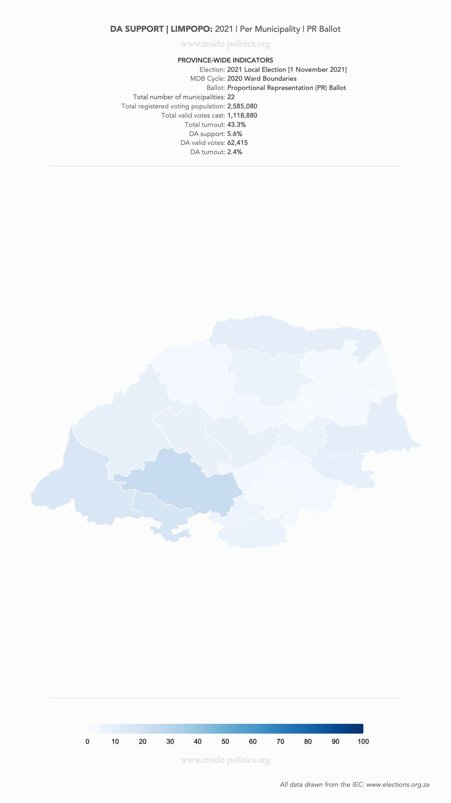 Heat Map: Limpopo | 2021 | DA Support by Municipality