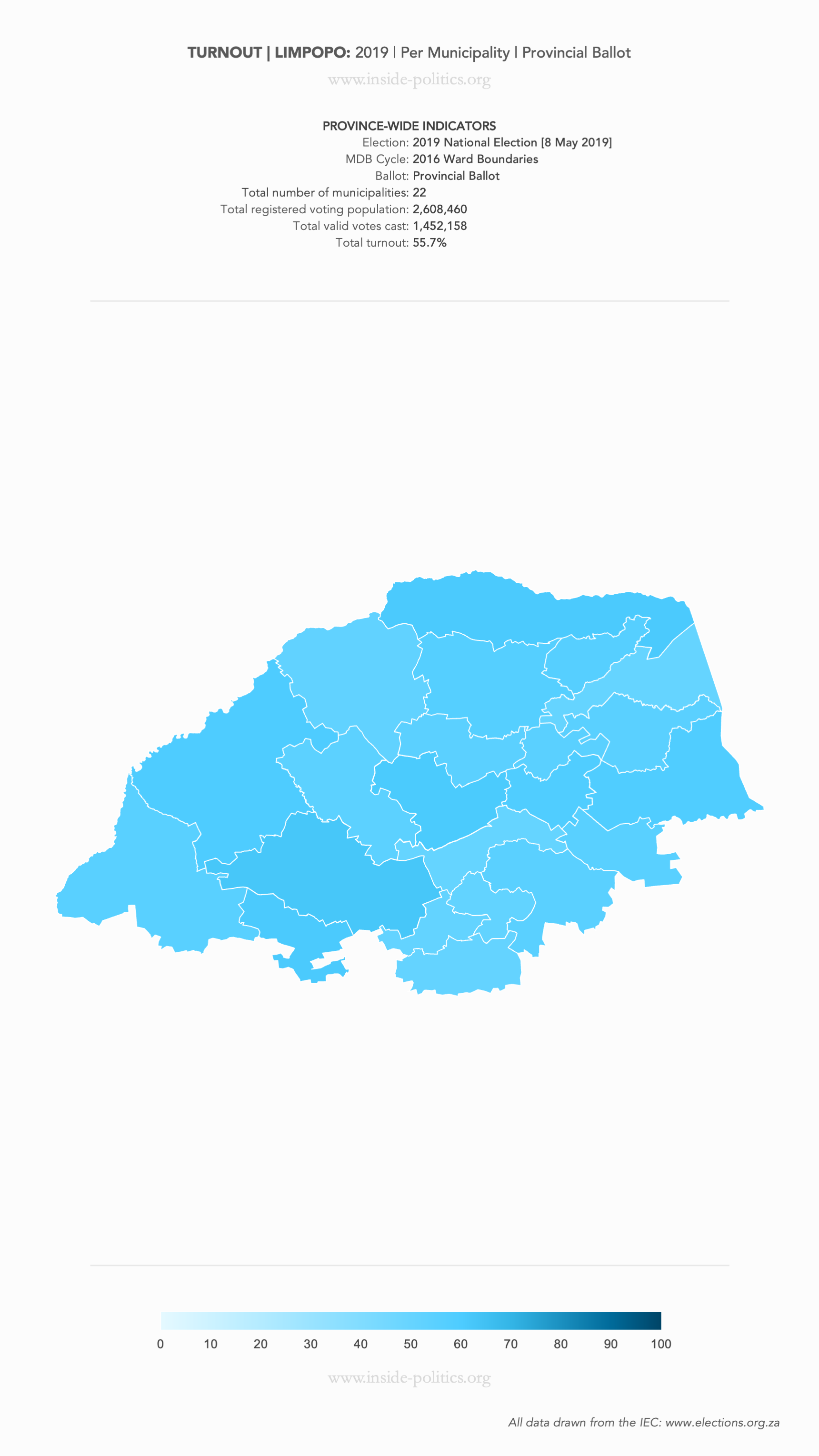 Heat Map: Limpopo | 2019 | Turnout by Municipality