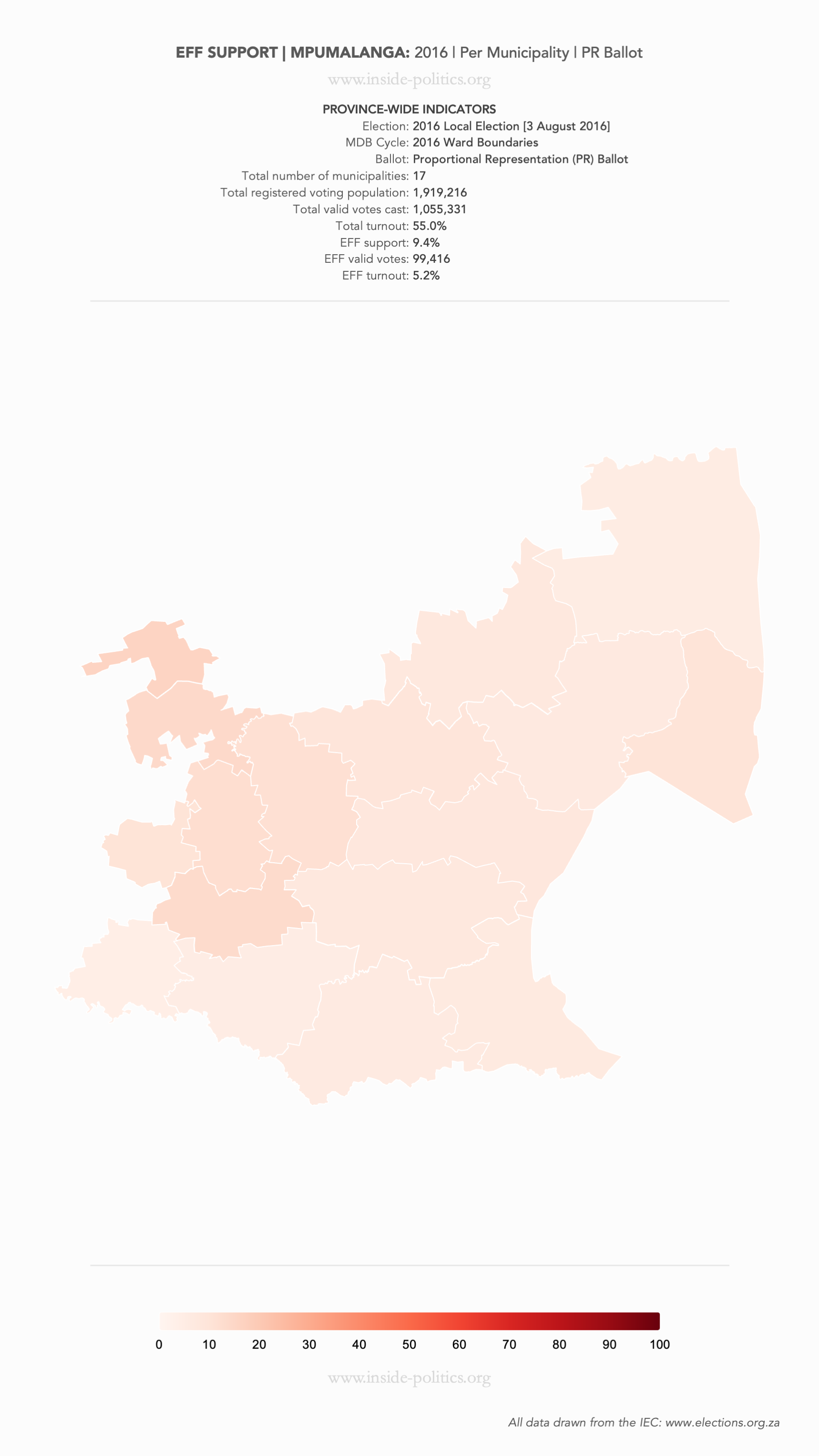 Heat Map: Mpumalanga | 2016 | EFF Support by Municipality