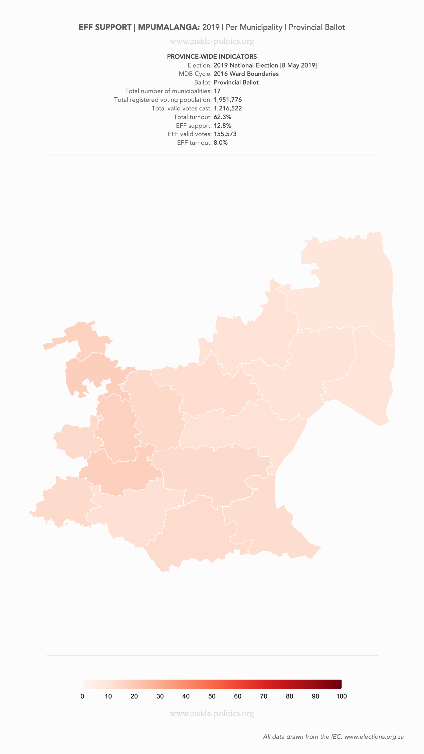 Heat Map: Mpumalanga | 2019 | EFF Support by Municipality