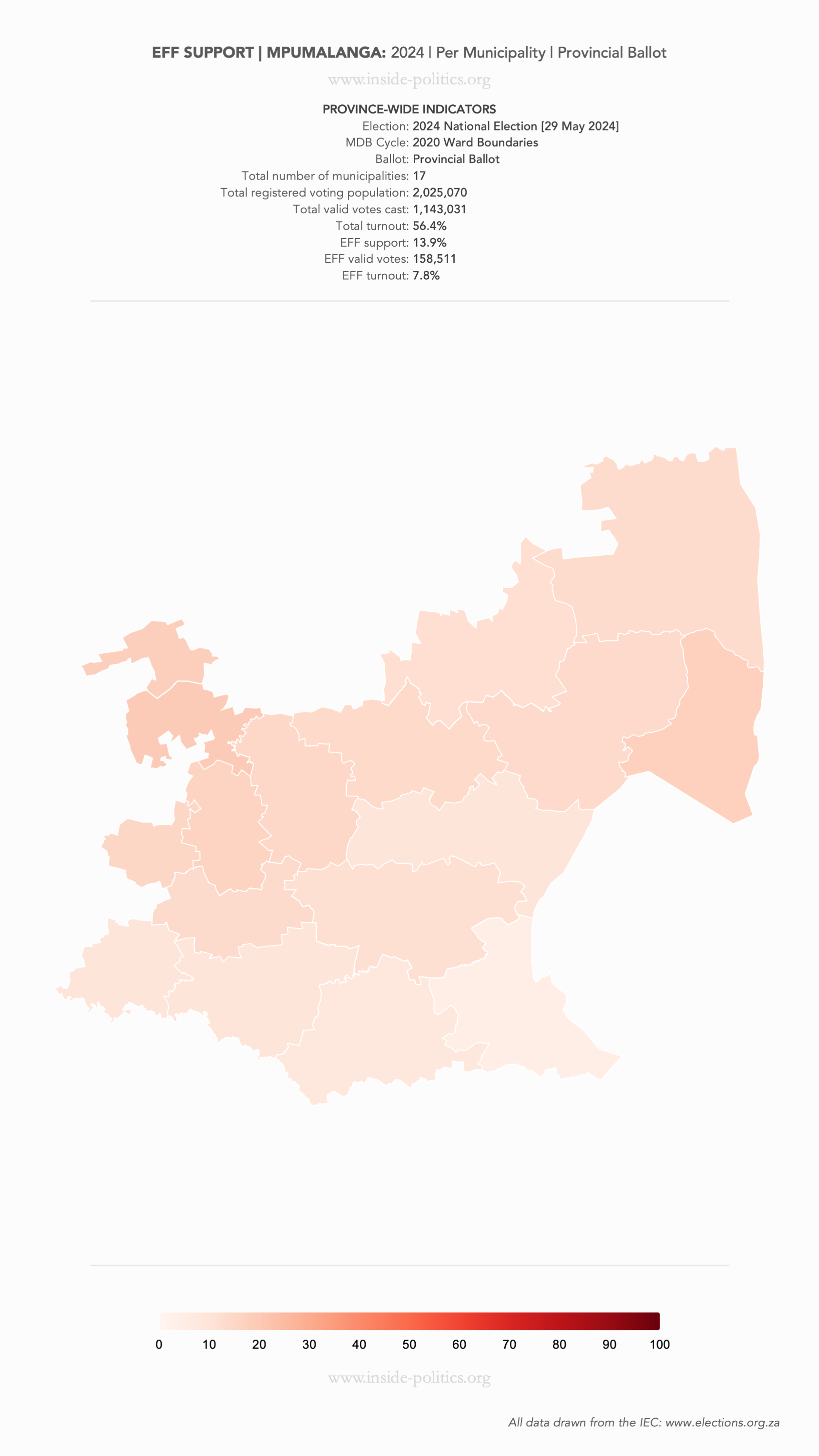 Heat Map: Mpumalanga | 2024 | EFF Support by Municipality
