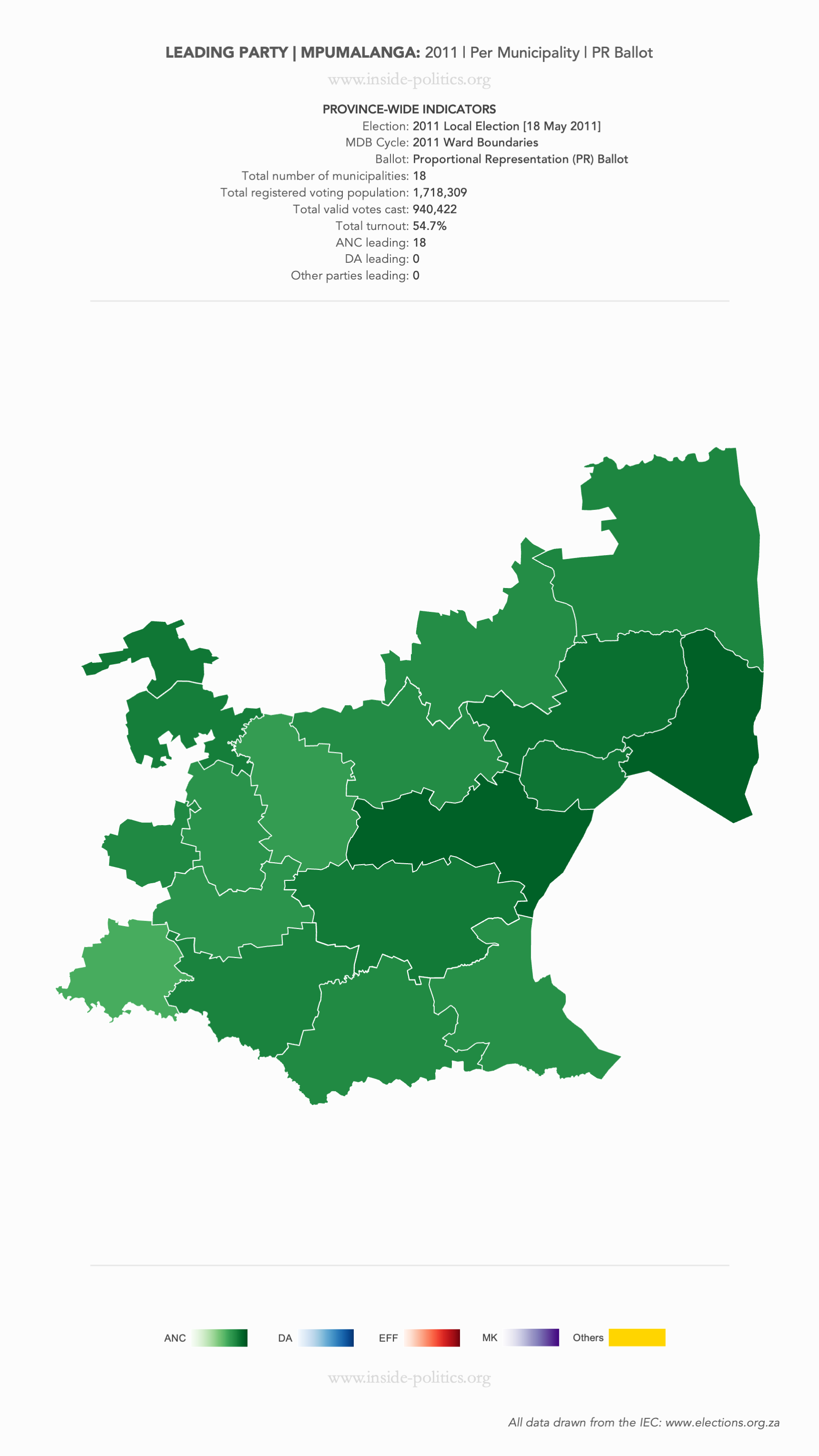 Heat Map: Mpumalanga | 2011 | Leading Party Support by Municipality
