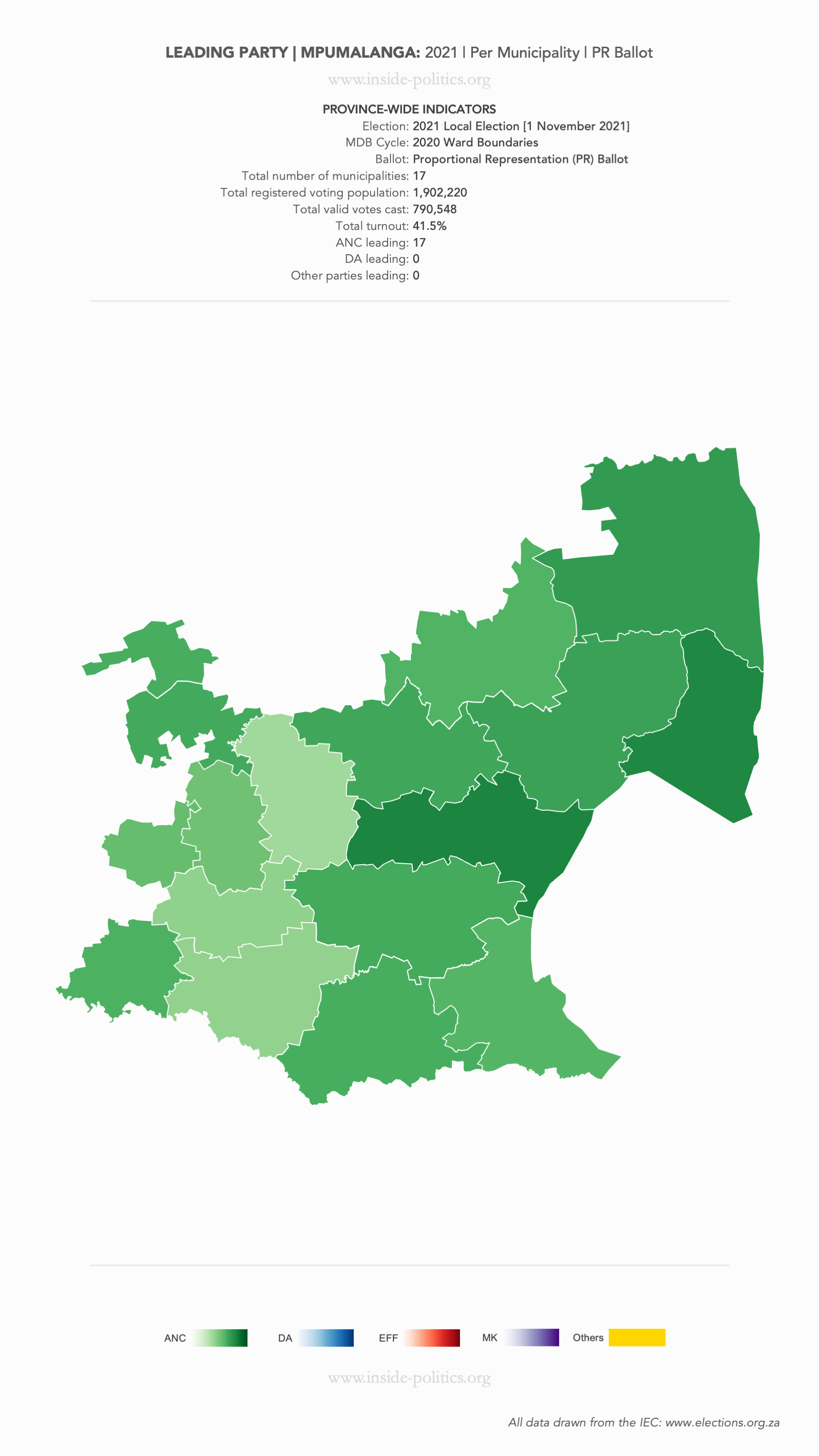 Heat Map: Mpumalanga | 2021 | Leading Party Support by Municipality