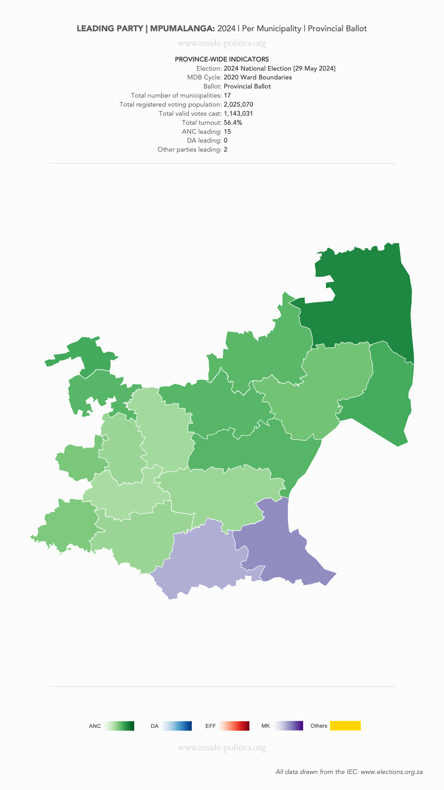 Heat Map: Mpumalanga | 2024 | Leading Party Support by Municipality