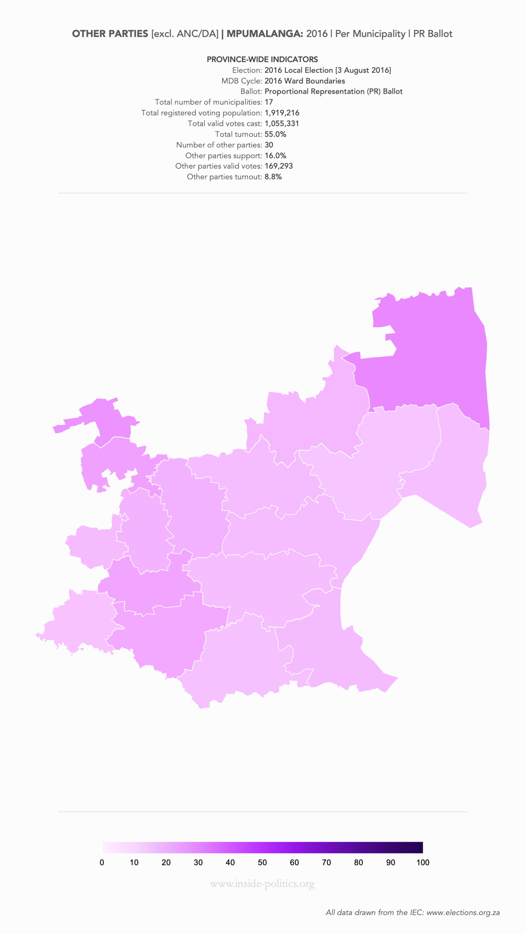 Heat Map: Mpumalanga | 2016 | Other Parties Support by Municipality