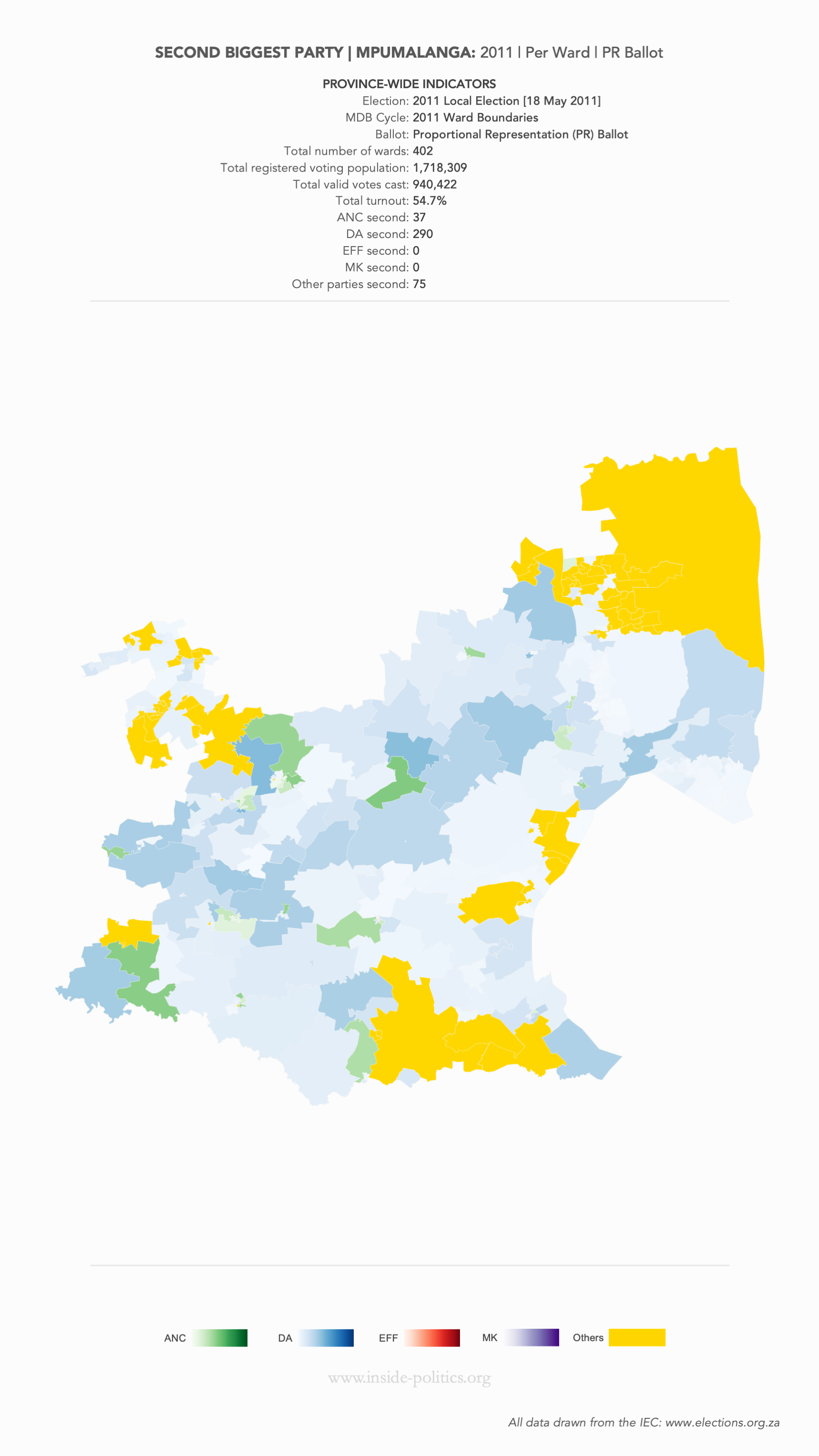 Heat Map: Mpumalanga | 2011 | Second Biggest Party by Ward