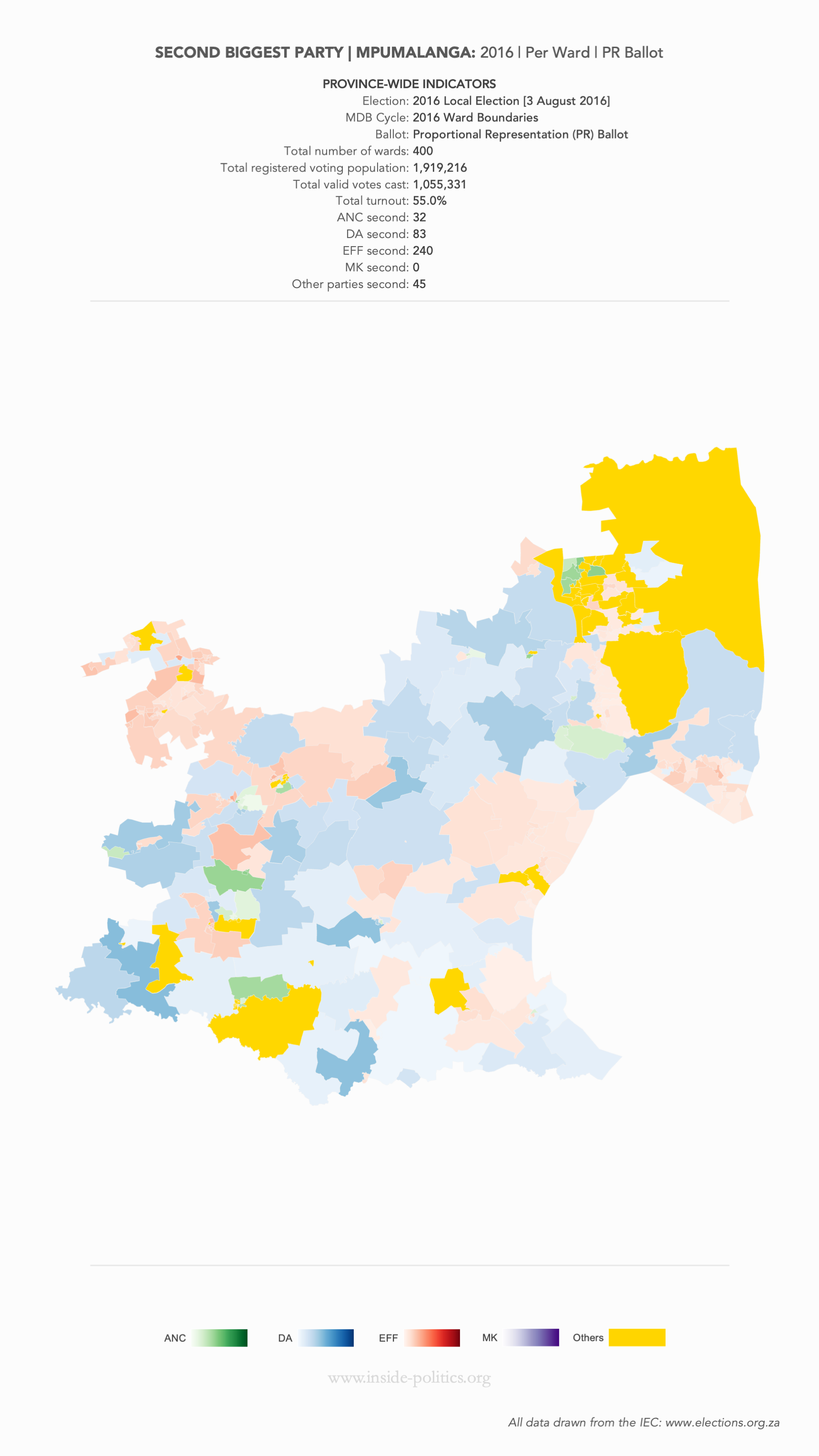 Heat Map: Mpumalanga | 2016 | Second Biggest Party by Ward